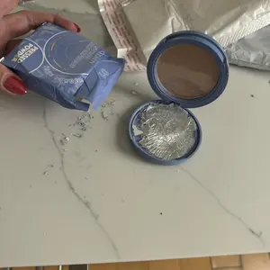 1. Open compact and flip open pressed powder to reveal the sponge applicator.