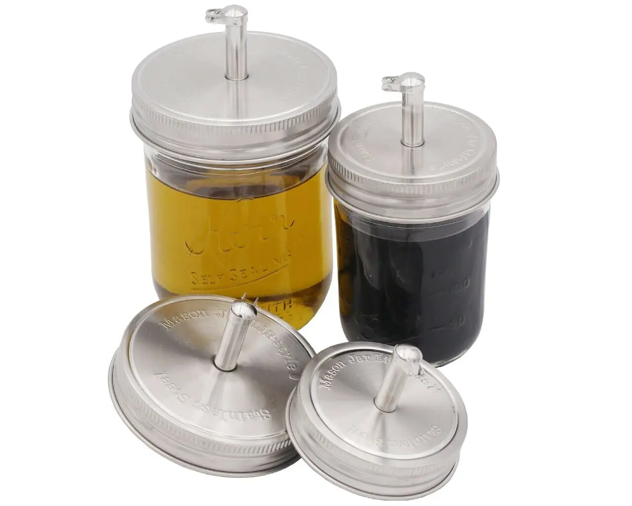 5. Oil Cruet Pour Spout Stainless Steel Lids for Mason Jars 2 Pack