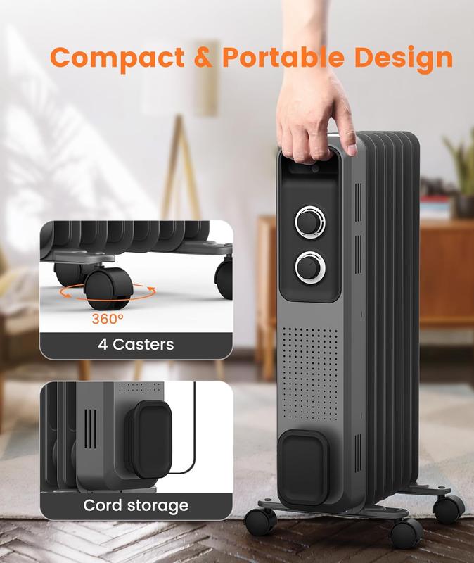 🌟 Quiet and Comfortable 🌟- Special Oil Heating: Heats the space by heating the special oil inside, providing comfortable skin without drying.- No Noise: No fan or operating noise, suitable for office, bedroom, and other quiet spaces.