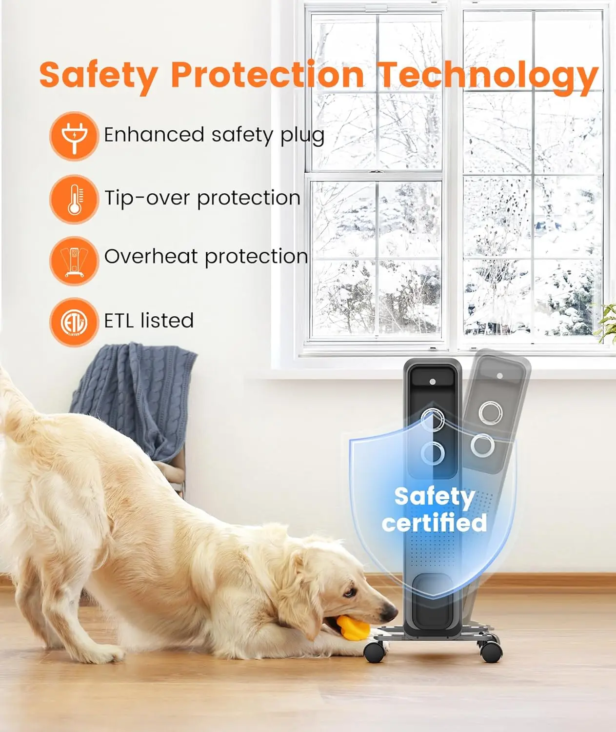 🌟 High Efficiency Heating 🌟- Convection Technology: Uses strong convection to create a circulating warm air flow, ensuring even heating.- Radiant Heat: Generates a lot of radiant heat, but with a low surface temperature, making it safe for homes with pets or children.