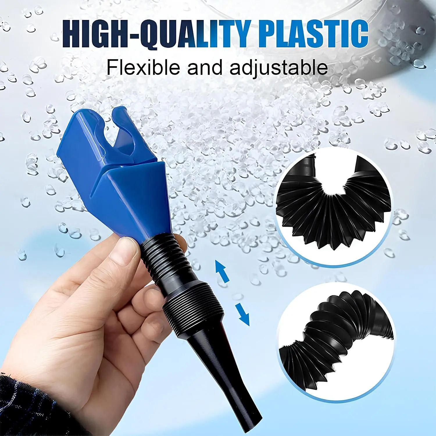 Crafted from high-quality, burr-free plastic that balances flexibility and sturdiness. Reusable and chemical-resistant (safe for oil, gas, diesel, etc.), it's designed to withstand repeated automotive and household use.