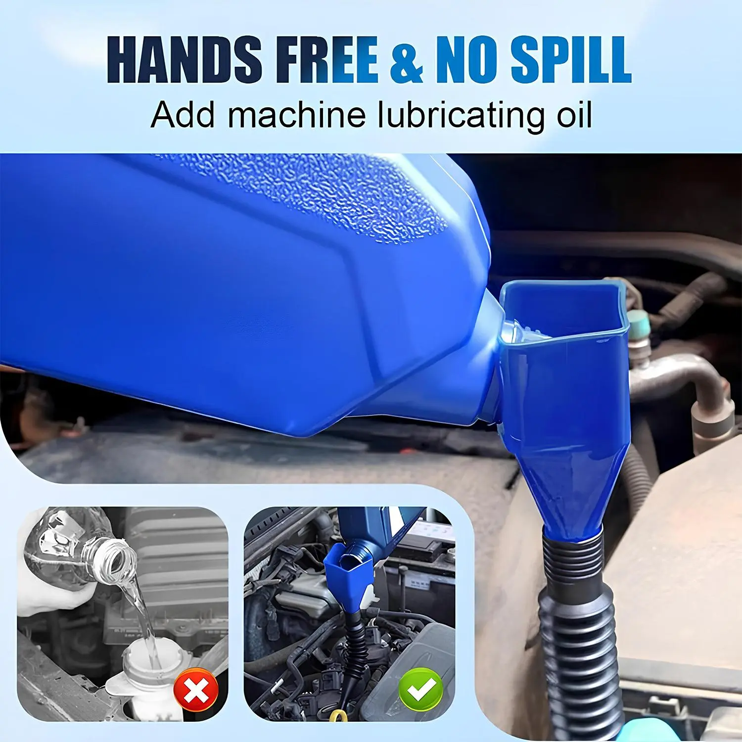 The retractable, bendable hose reaches tight fill ports (engine bays, motorcycle tanks) with ease. Its wide mouth accommodates fast, mess-free pouring of liquids like oil, gasoline, coolant, or household fluids.