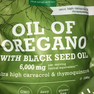 ·Mediterranean Oregano Oil + Black Seed Oil blend with thymol & thymoquinone, scientifically formulated for antioxidant synergy and daily wellness support.