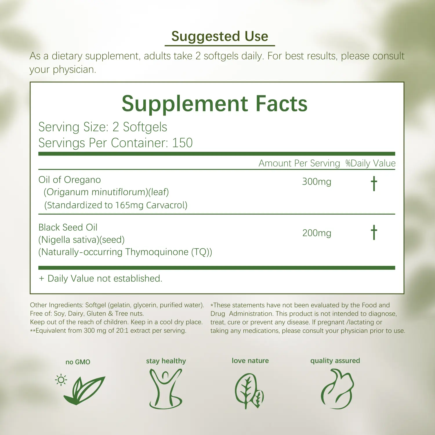 🔸 165mg Naturally Occurring Carvacrol & Thymoquinone – Powerful antioxidant support