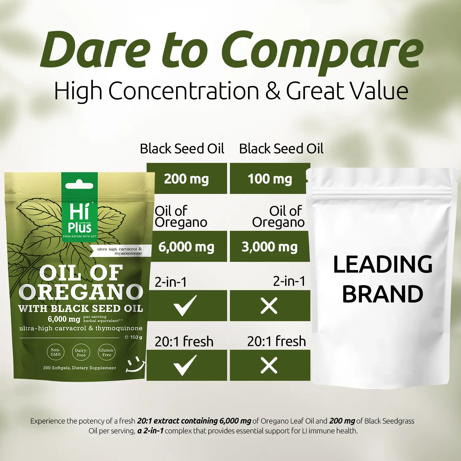 If you’re looking for a high-quality herbal supplement, HiPlus Oil of Oregano & Black Seed Oil is your best choice! Each serving delivers 6,000mg of high-potency Oil of Oregano + 200mg of Black Seed Oil, expertly extracted for maximum purity, superior absorption, and optimal results. 🌿💎