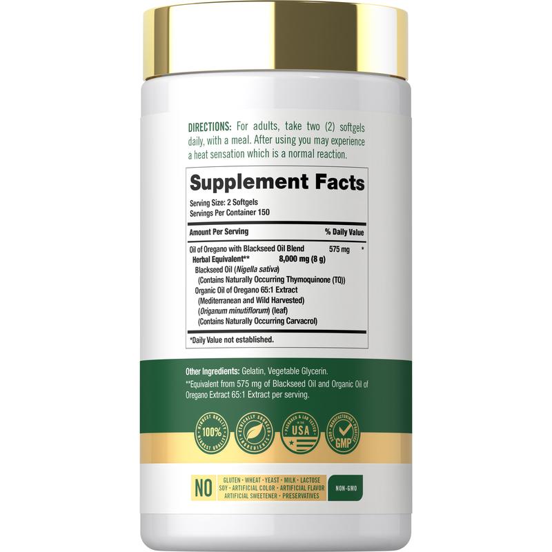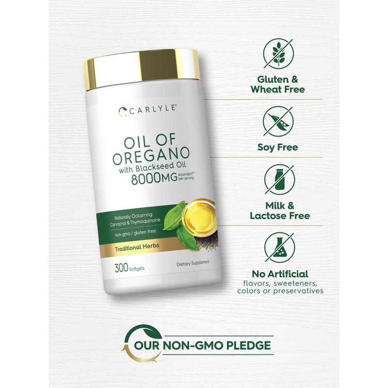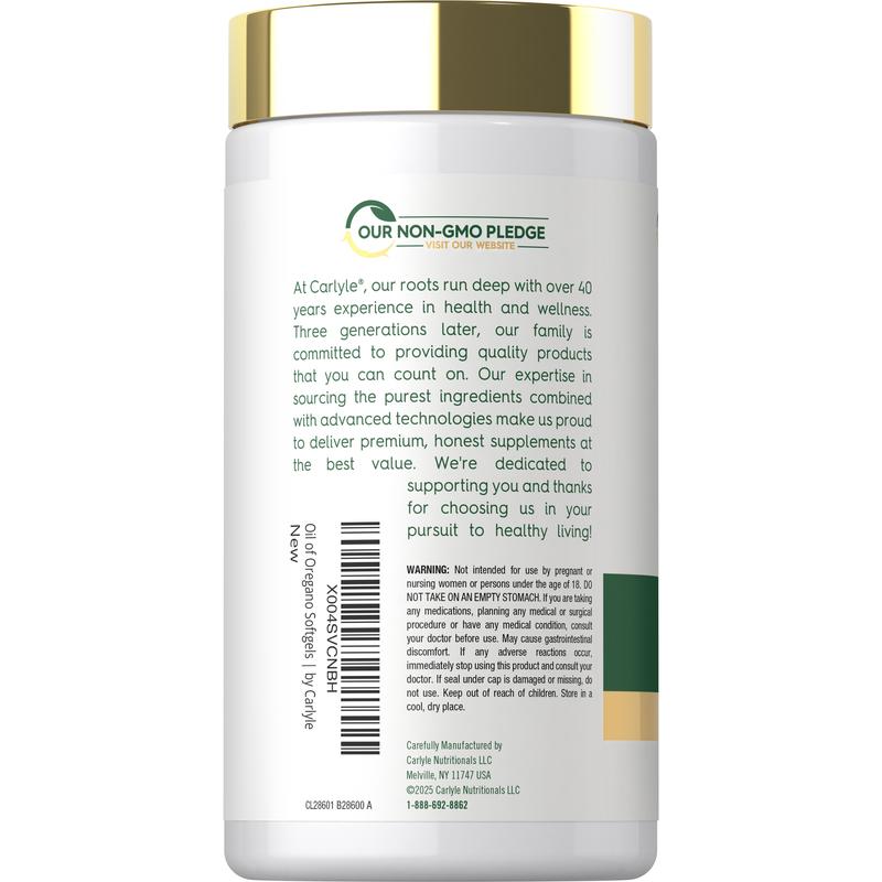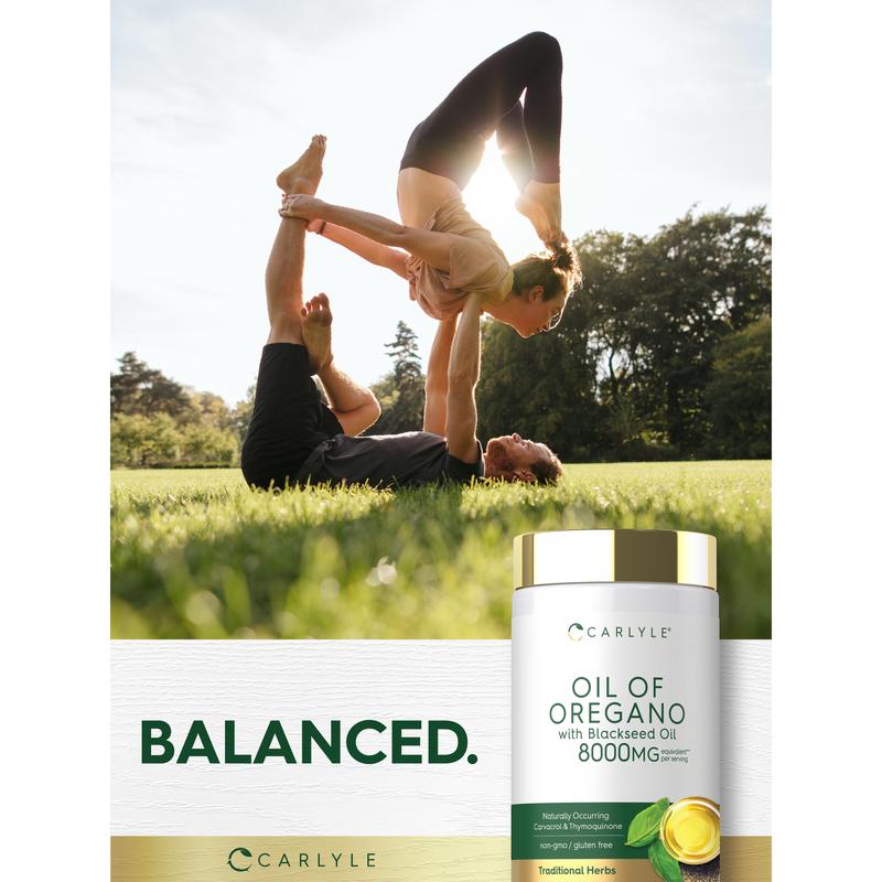 At Carlyle, our formula delivers the equivalent of 8,000 mg per serving of Oil of Oregano with Blackseed Oil, providing naturally occurring carvacrol and thymoquinone.** It's gluten free and non-GMO, made with no artificial flavors, colors, or sweeteners, making it a perfect way for men and women to experience the benefits of these traditional herbs!