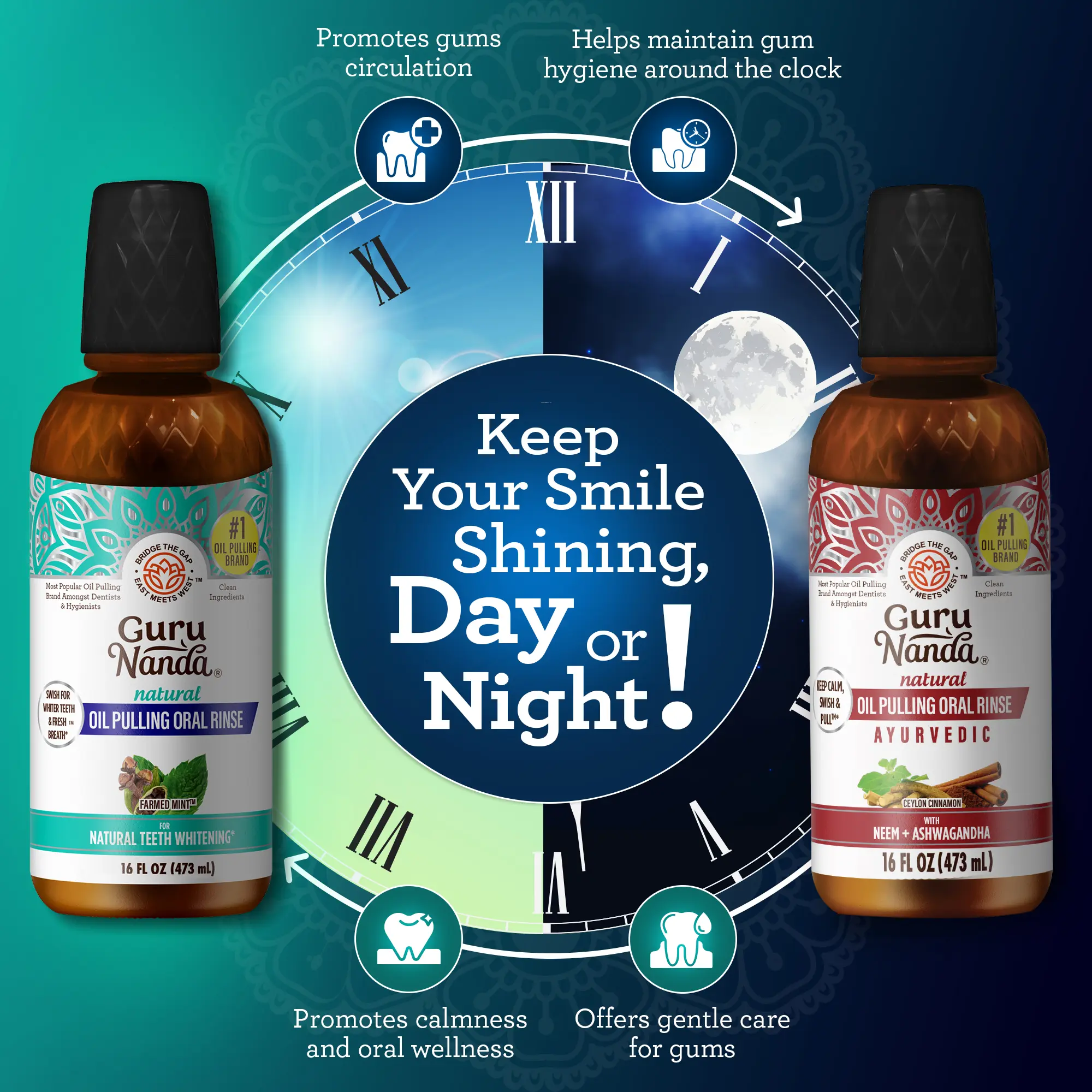 GuruNanda Ashwagandha Oil Pulling helps to freshen breath, promotes happy gums, and provides a calming oral wellness experience. It’s designed to be a supportive part of your daily oral care routine, complementing brushing, flossing, and other practices.