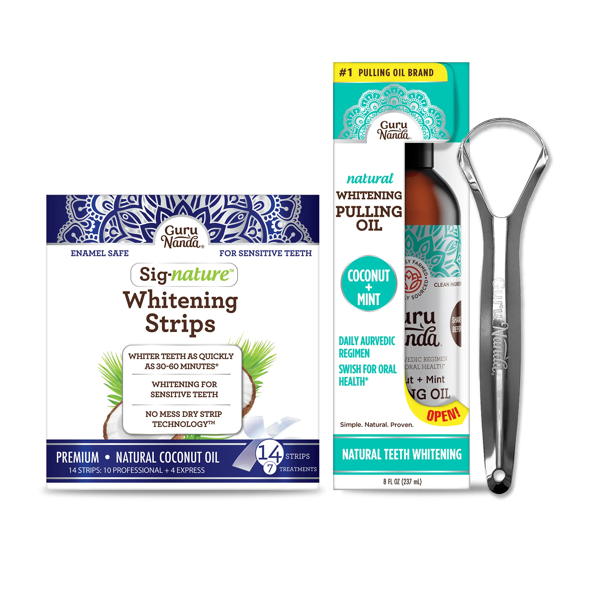 *GuruNanda oil pulling is a pre-brush rinse with less density than coconut or sesame oil; that’s hydrophobic and lipid inspired heavily by Ayurvedic knowledge. It’s a preventative added part of an oral care regimen. It is not a replacement for your dentist, nor does it cure active dental problems including but not limited to infections, deep cavities, gingivitis, etc.