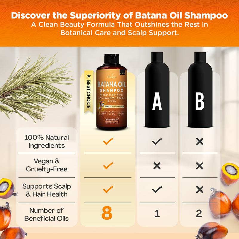 Experience the power of 8 natural ingredients in one nourishing shampoo. The OKAGA Batana Oil Shampoo is crafted to support the look and feel of fuller, healthier hair—without harsh chemicals. Whether you're managing daily buildup or looking to elevate your scalp care routine, this shampoo is a go-to blend for all hair types.