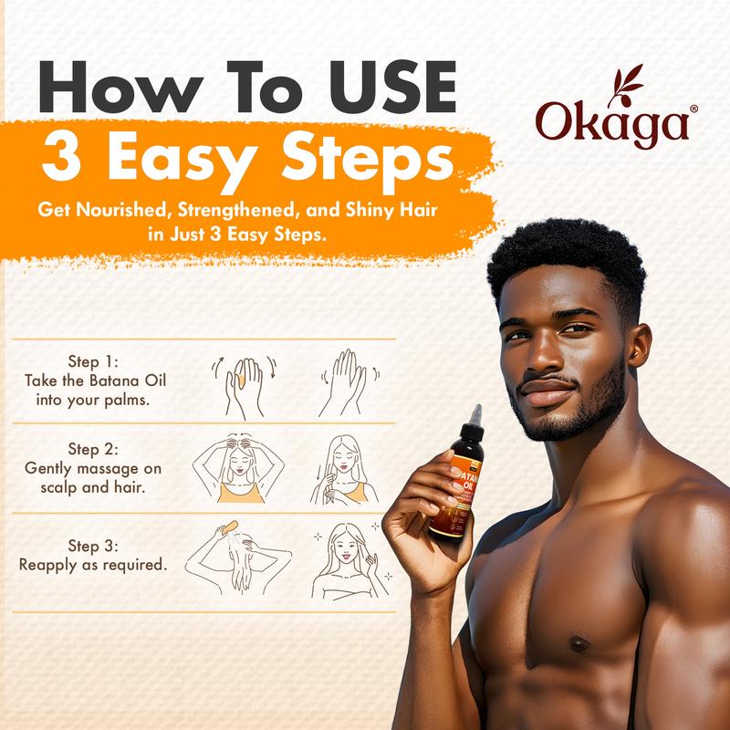 Keep your hair looking and feeling its best with OKAGA All-in-One Liquid Batana Oil!
