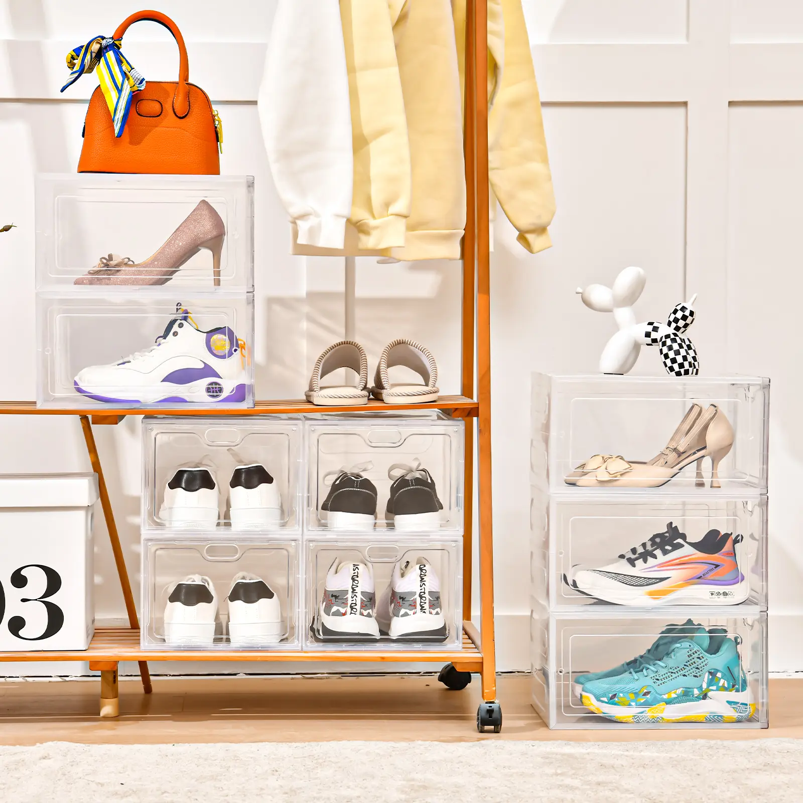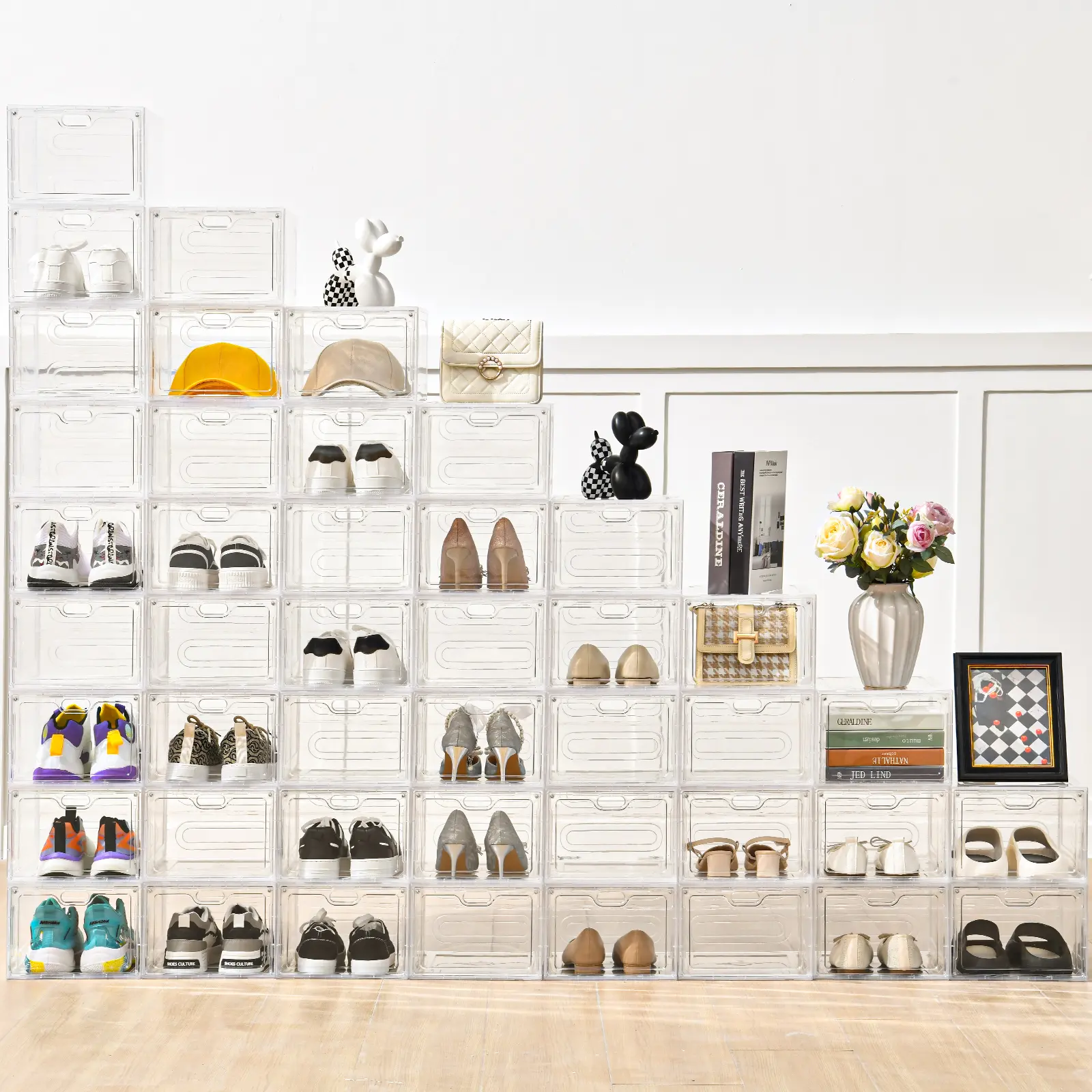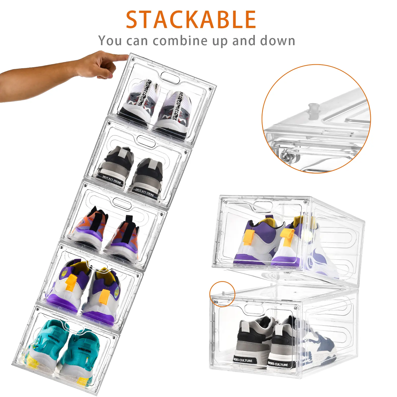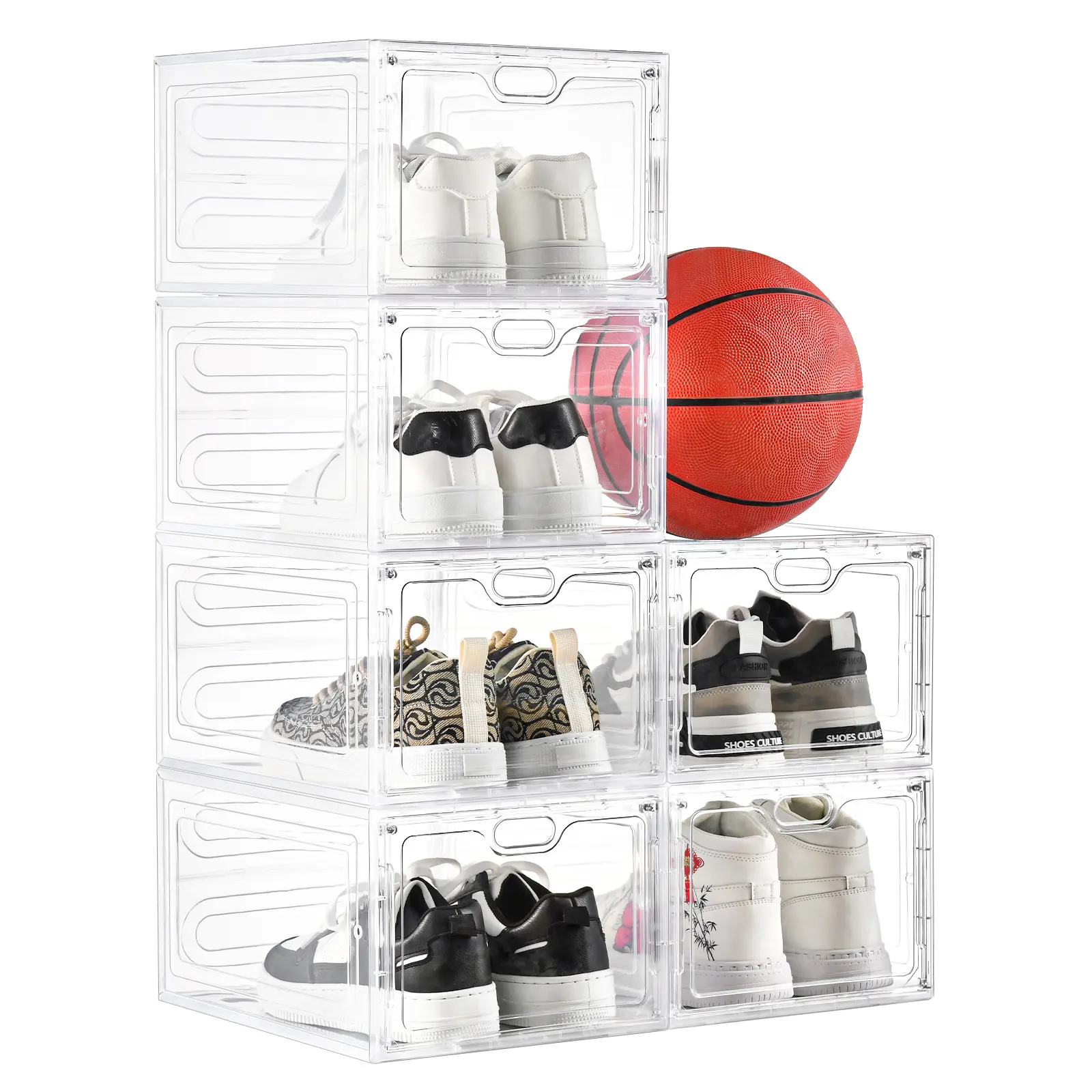 【OKMARTS】 Stackable Shoe Storage Box with Magnetic Door - 6/12 Pack Clear Plastic Transparent Dust-Proof Organizer for Dormitories Apartments Living Rooms - Saves Space & Displays Sports Shoes