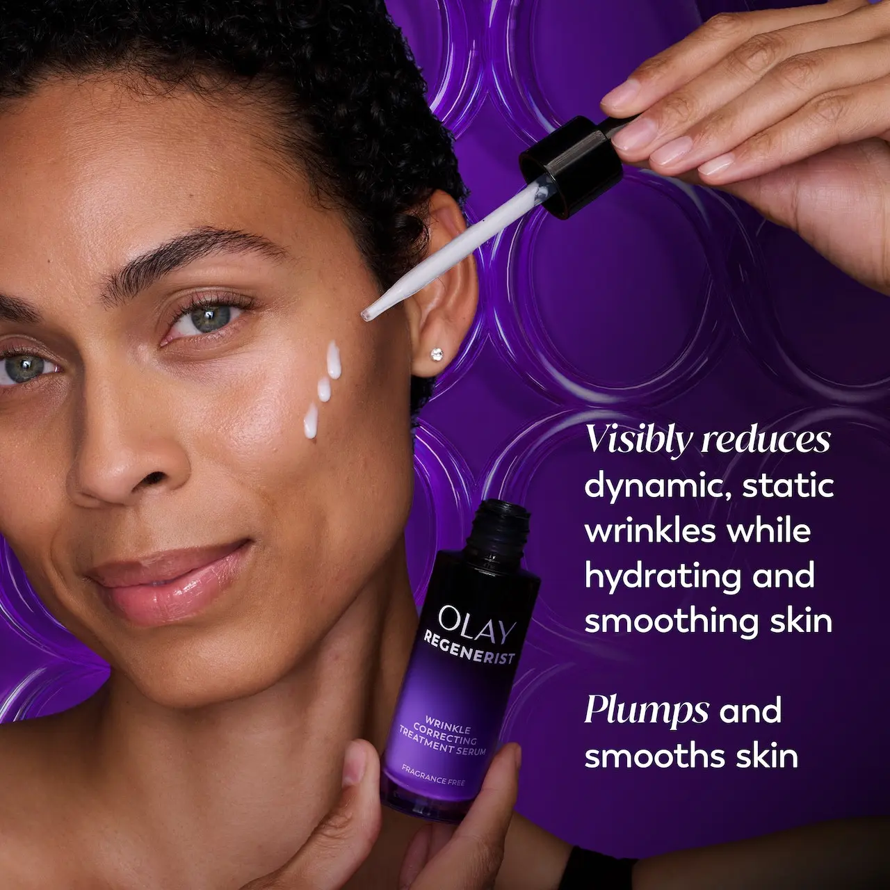 Experience the Olay Regenerist Wrinkle Correcting Treatment Serum, a fragrance-free, non-invasive nightly solution designed to tackle dynamic and static wrinkles on the forehead and around the mouth.