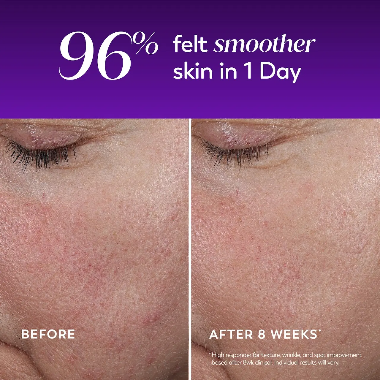 Night 14: Moderate lines are visibly smoothed and reduced, enhancing your skin's natural beauty.