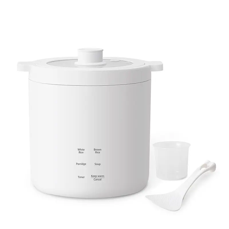 PACKAGING INCLUDES: This mini rice cooker is packaged with a ceramic non-stick coating rice cooker, a 160ml large rice measuring cup, a rice spoon, a detachable power cord, and an instruction manual.