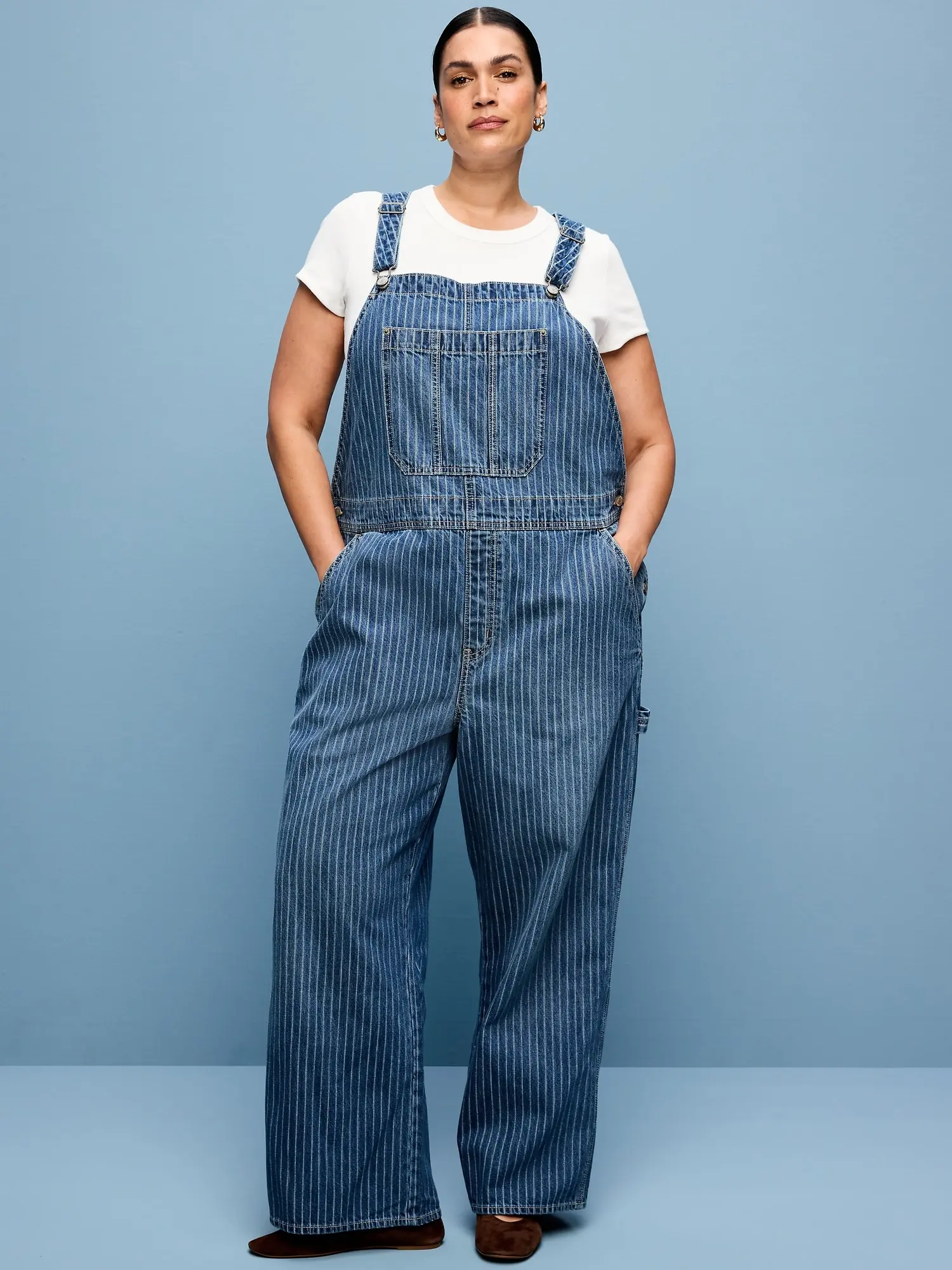 WAIT I AM OBSESSED 🫶🏽 made for all sizes!    #denimoveralls #overalls #jeanoveralls #stripedoveralls #oldnavy