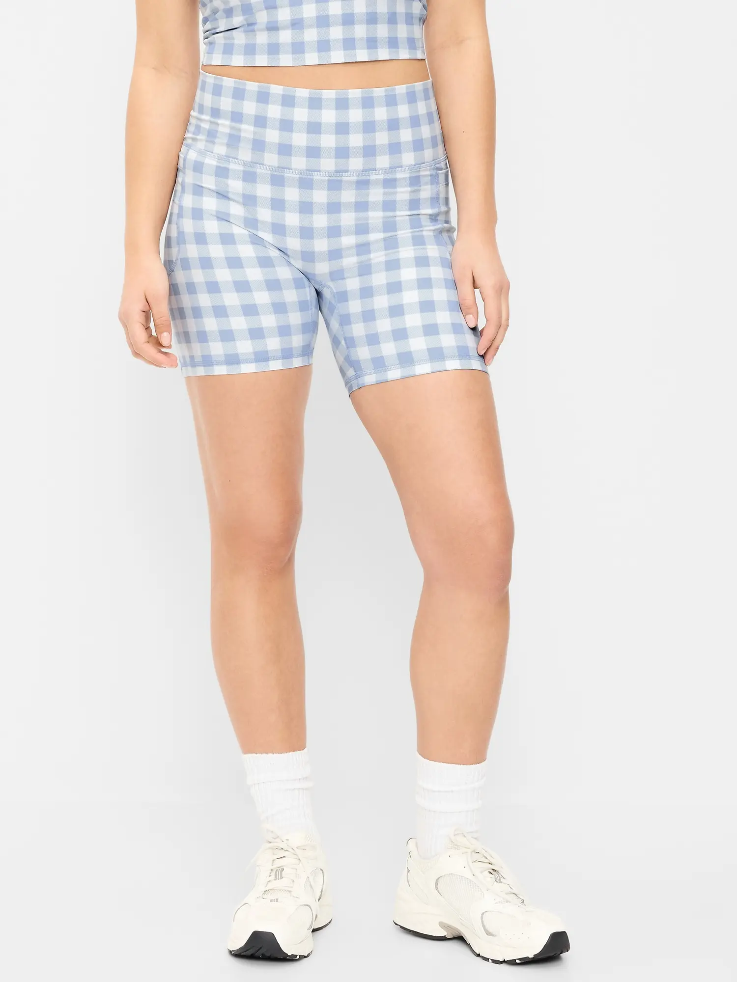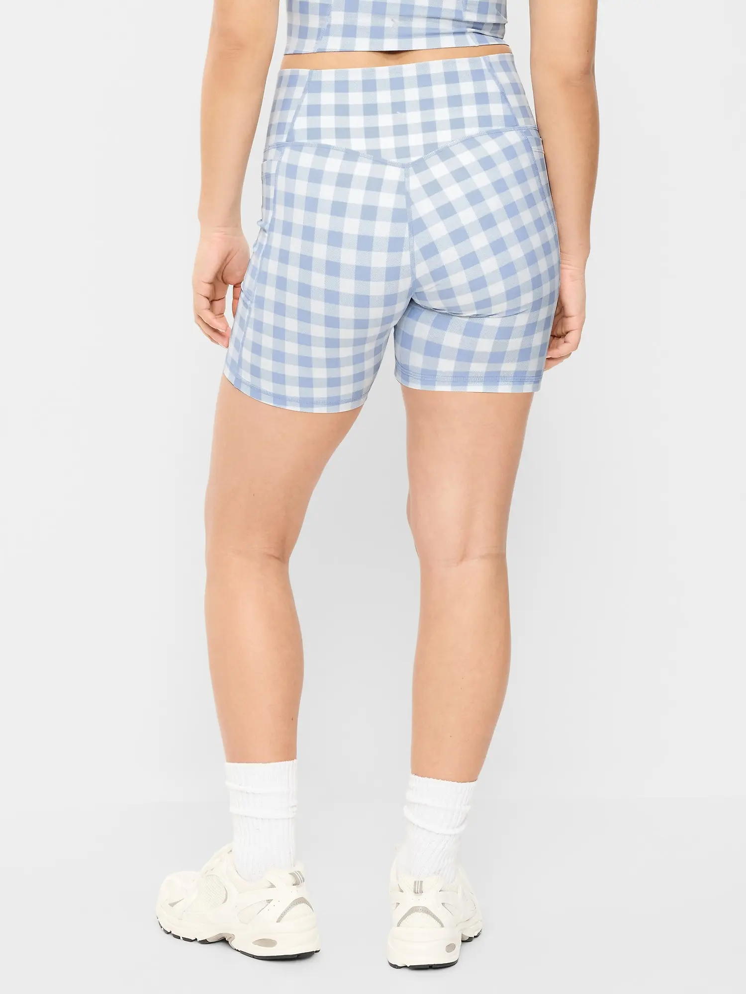 Old Navy gingham biker shorts are the cutest spring activewear find! These extra-high waisted PowerSoft biker shorts are comfy, flattering, and perfect for workouts, errands, or a casual athleisure outfit. The blue gingham print makes them feel so fresh for spring and summer. #oldnavyfinds #bikershorts #ginghamstyle #athleisurelook #tiktokshopfinds