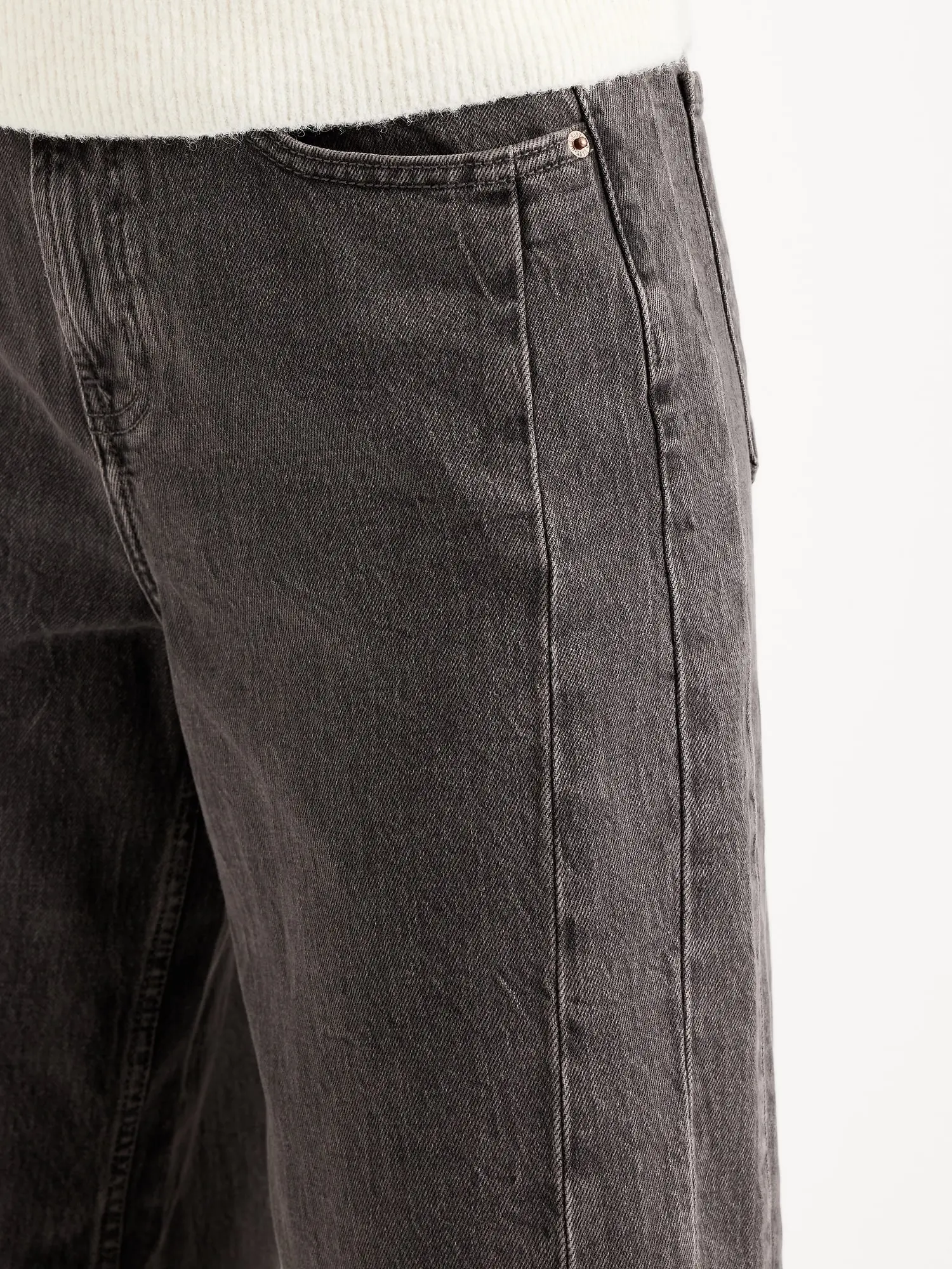 A curved, tapered leg and proportion play from hip to hem.