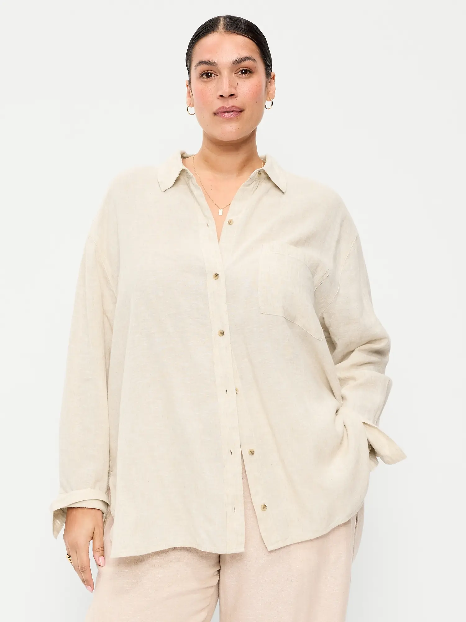 Linen-Blend Loose Button-Down Shirt