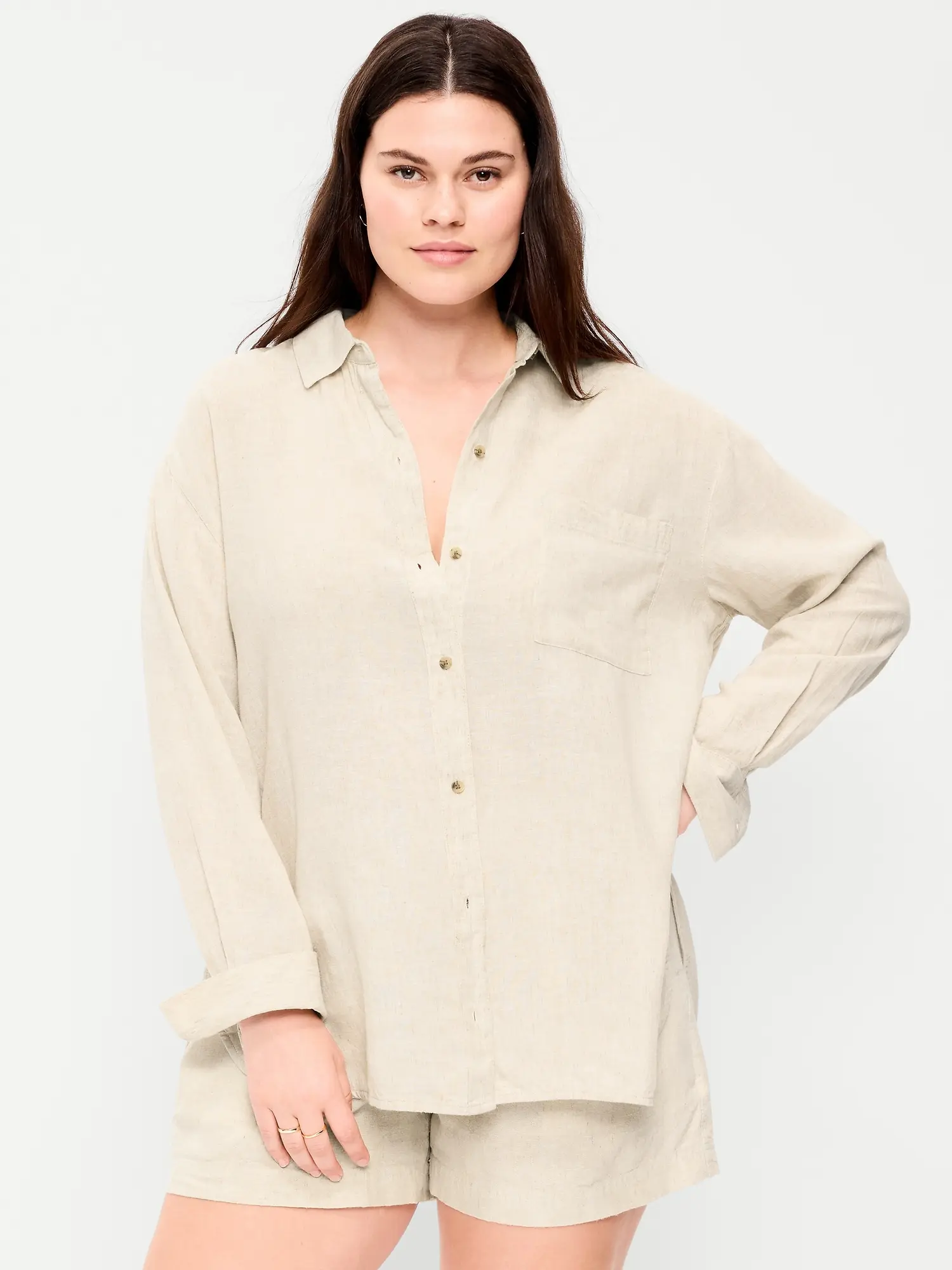 Old Navy Women's Linen-Blend Loose Button-Down Shirt
