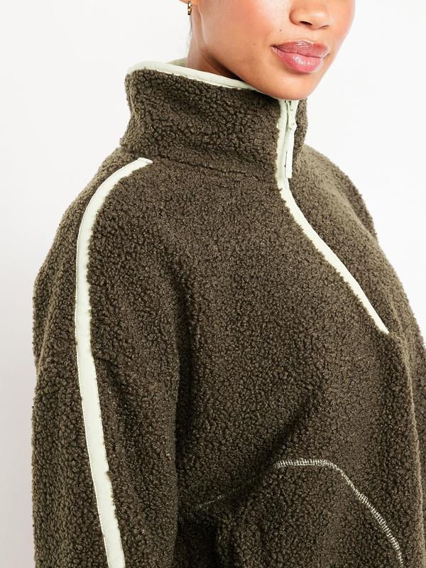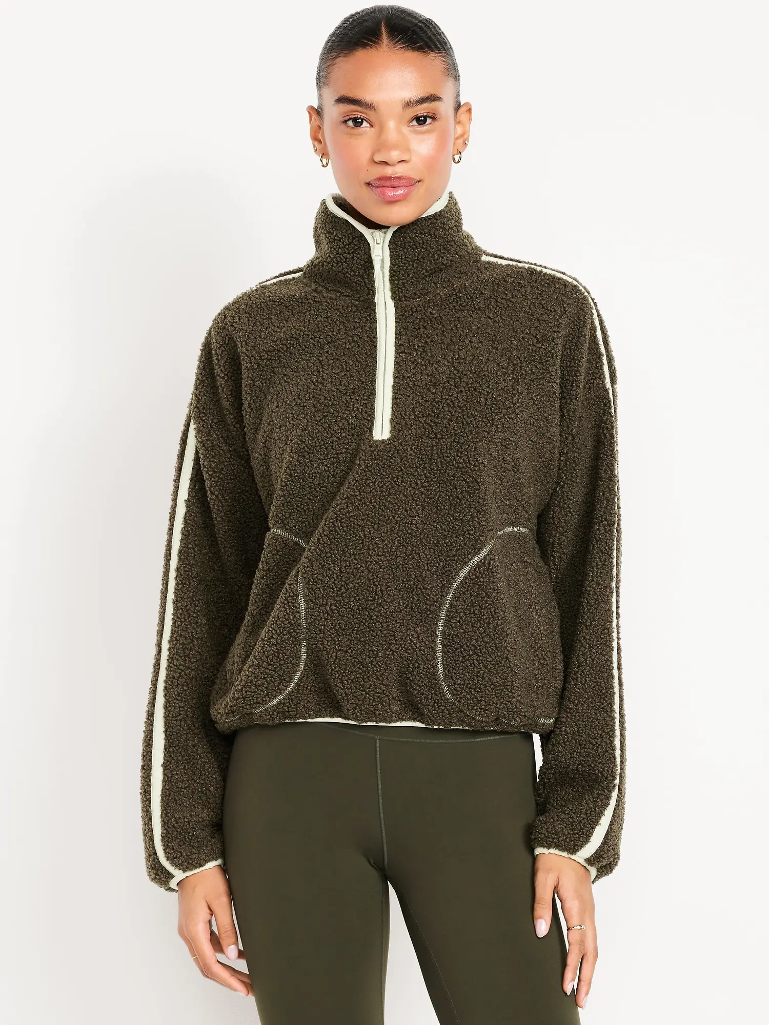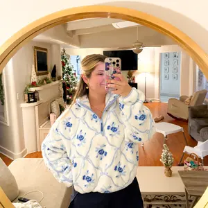 I absolutely love this Sherpa quarter zip !! It is sooo warm and soft and cozy !!! I recommend sizing up if you want a comfier, oversized fit. I got a medium and it fits just right. The pattern is so pretty and it keeps you super warm !! I highly recommend :)