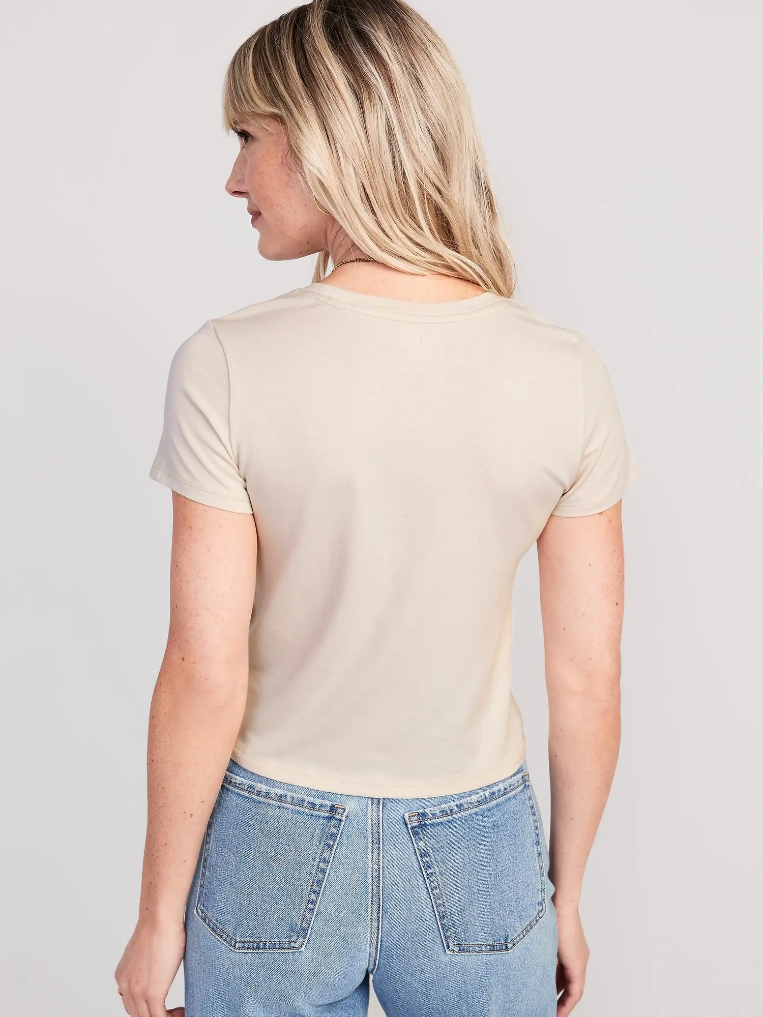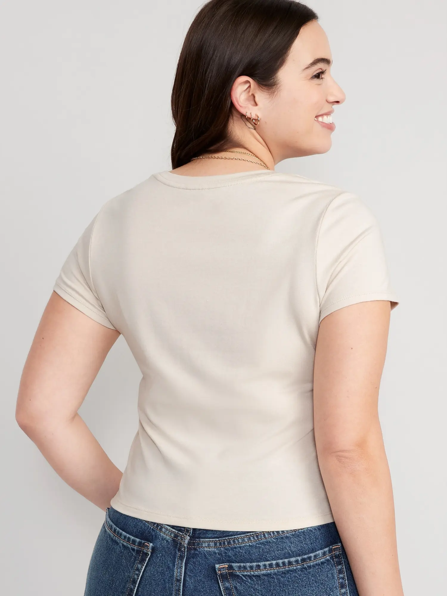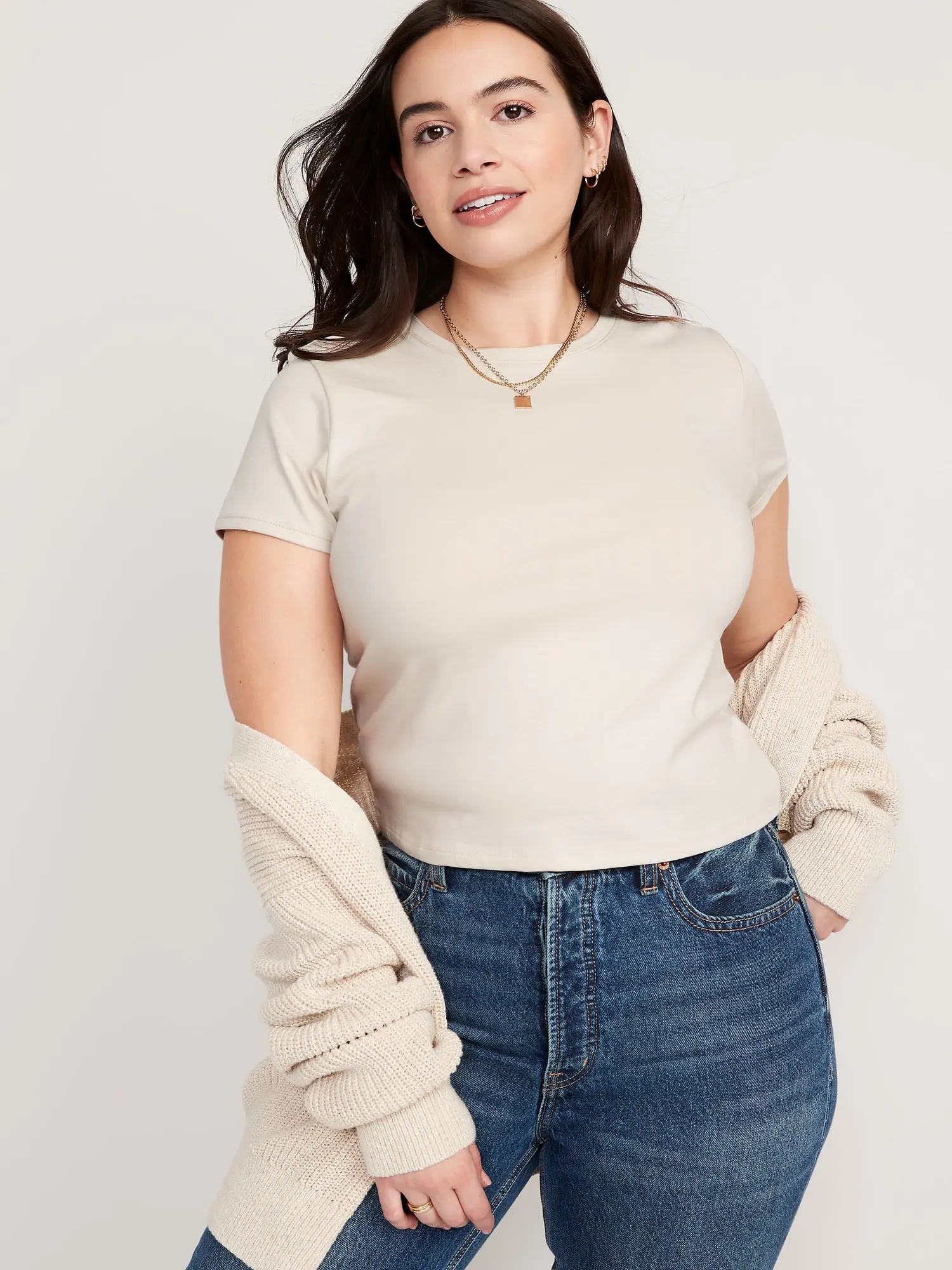 Favorite cropped tee I had the wishbone color first it held up tons of washes and wears so far so just bought it in two more colors! True to size, so cute, need more colors in it!