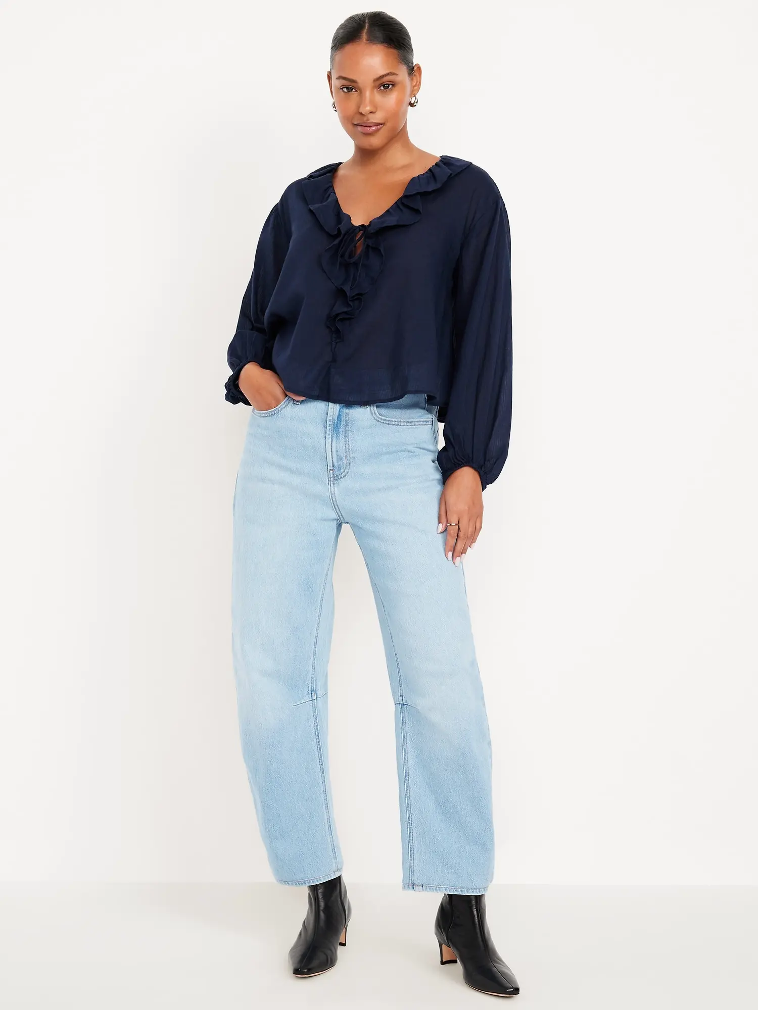 These barrel jeans are very good quality. I love the fit.