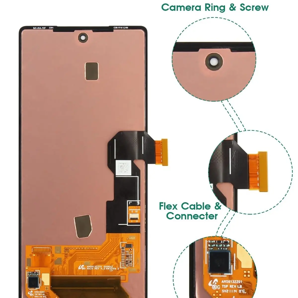 【Parameters】For Google Pixel 6A GX7AS GB62Z G1AZG LCD digitizer screen assembly replacement, please confirm your phone model before purchasing.(Supports fingerprint functionality, but the fingerprint flex cable needs to be removed from your old screen and requires calibration before removal.)