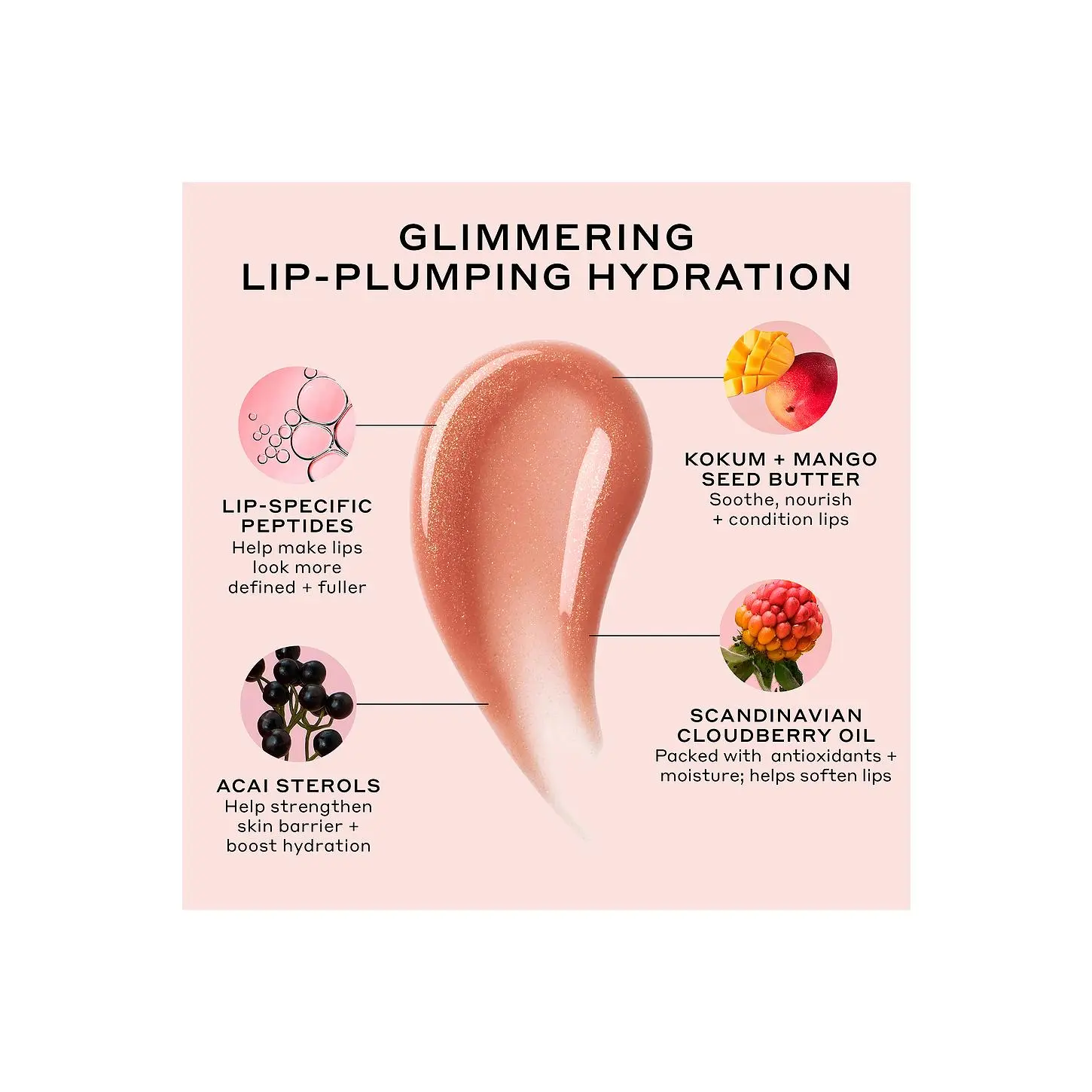 ·Cloudberry Oil provides intense moisture and visibly softens lips Lip-specific Peptides makes lips look more defined and fuller