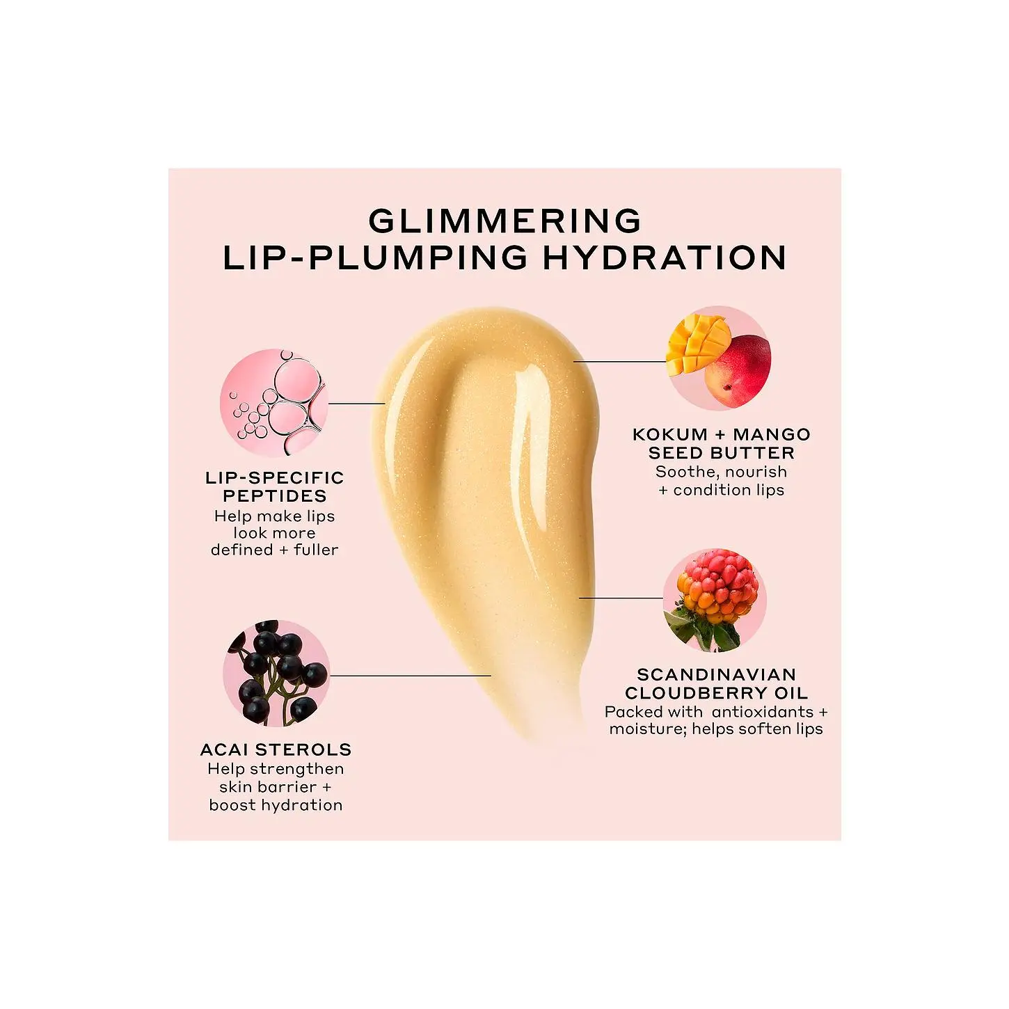 ·Cloudberry Oil provides intense moisture and visibly softens lips Lip-specific Peptides makes lips look more defined and fuller