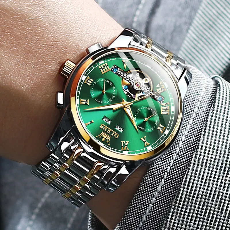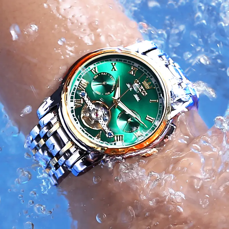 Classic Skeleton Design: 41 mm (1.61 inches) large face design, sparkling diamonds and Roman numerals combination, classic fashion. The ingenious tourbillon skeletonization enhances the watch's taste. The month, day of the week and day of the week display windows provide more detailed time.