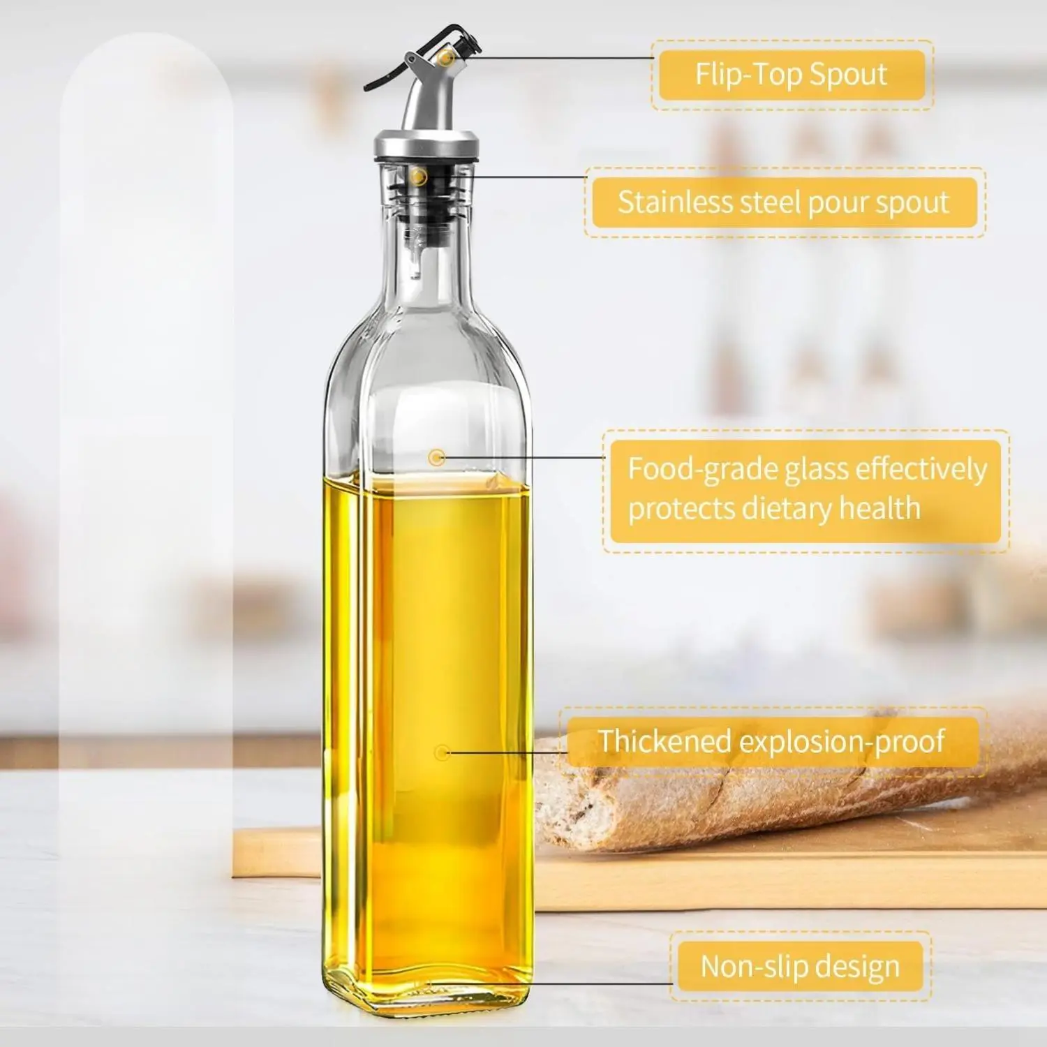 Based on user feedback, the spout is upgraded for better control. Just press a thumb to release oil. The cover seals tightly, keeping contents fresh and clean. This design ensures precise oil measurement every time.