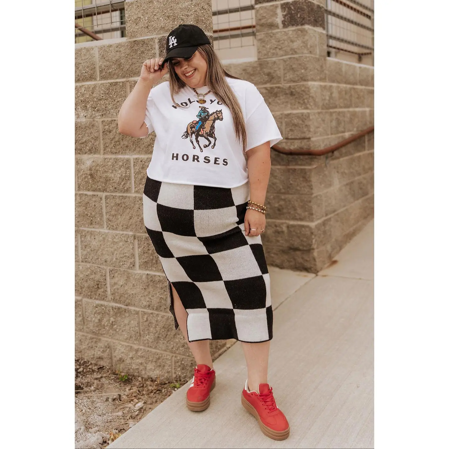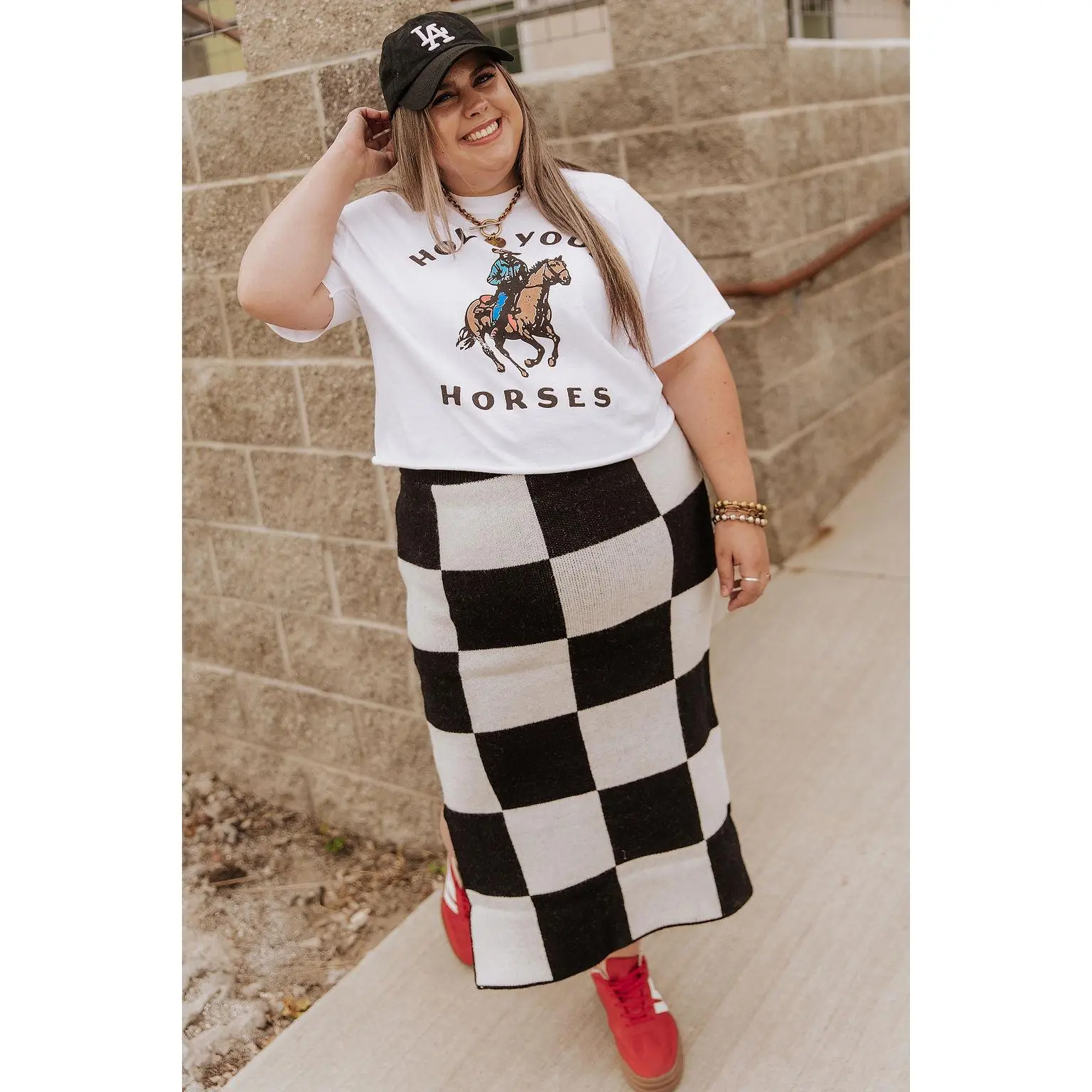 She’s checkered, she’s a knit, and she’s COMFY!! Available in sizes S/M, L/XL, and 1X/2X