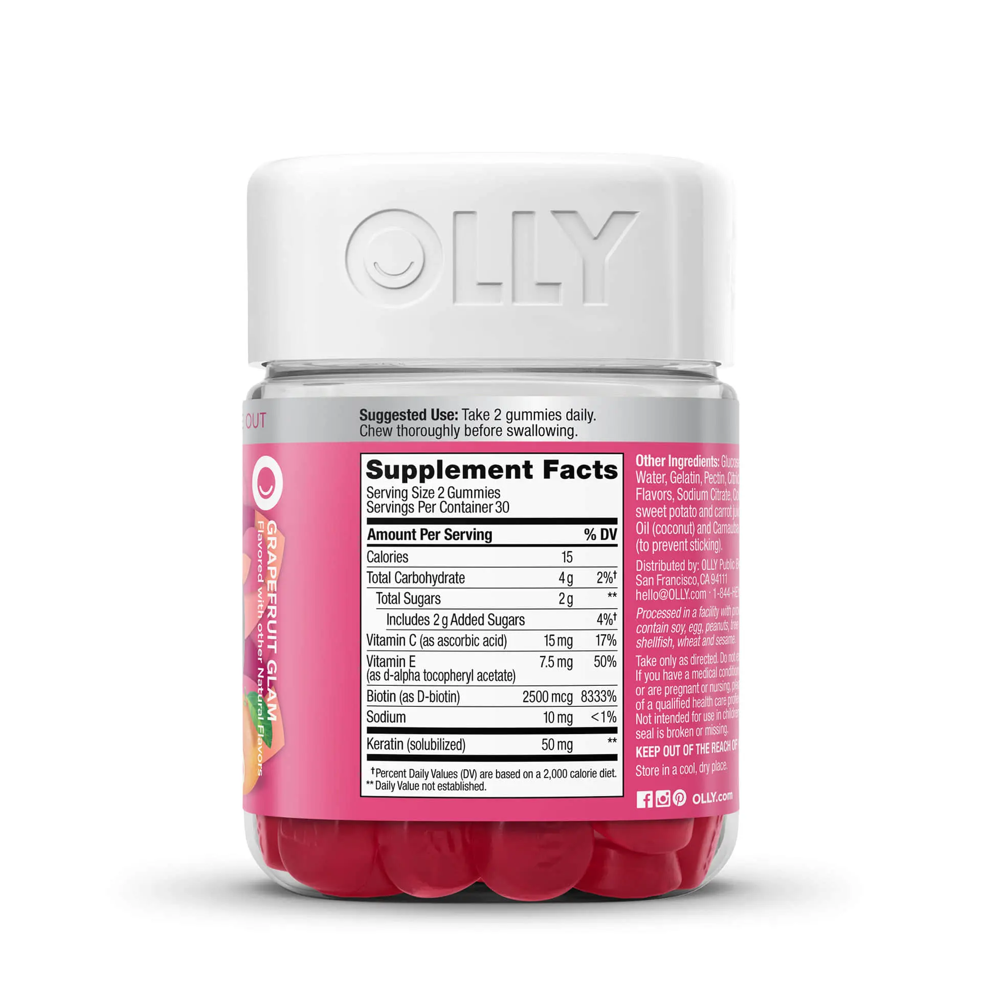 OLLY Undeniable Beauty Gummy, For Hair, Skin, Nails, Biotin, Vitamin C, Keratin, Chewable Supplement, Grapefruit, 30 Day Supply - 60 Count