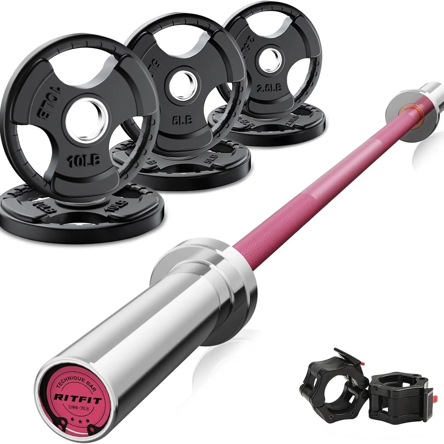 ·【30LB Barbell Set】The set includes a 4-foot barbell with a pair of collars and a set of 30lb(15lbx2) weight plates. With the barbell included, the total weight adds up to 50lb.