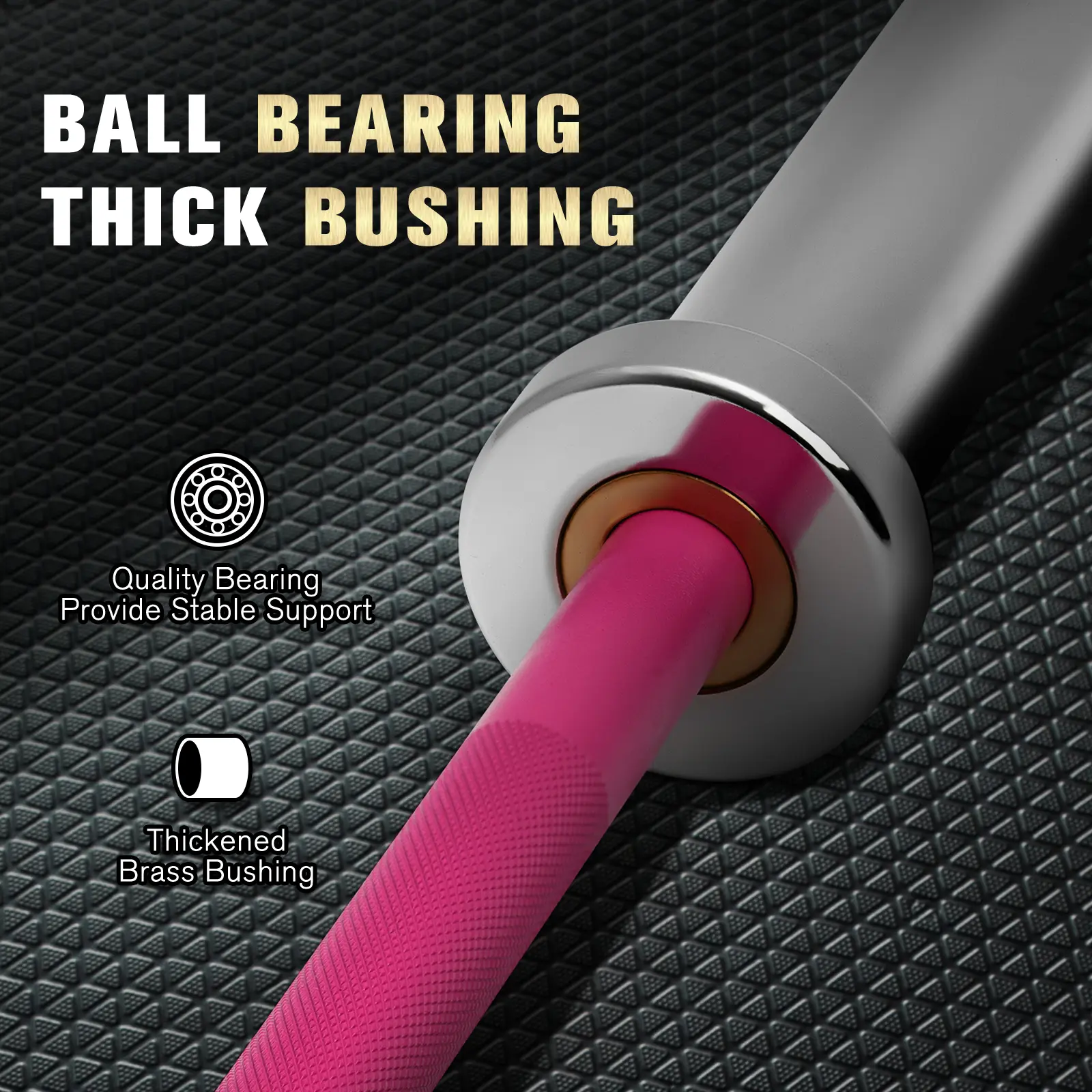 The barbell is secured and supported by multiple washers and ball bearings to reduce noise during movement and ensure quiet and smooth rotation.
