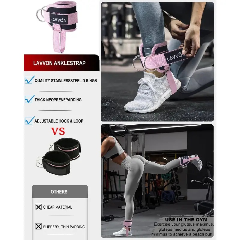 With our engineered kickback strap the main strap stays on your ankle and doesn't slide around.Enjoy an intense workout session without worrying about your straps coming loose and let your back kick more standard, won't strain the muscle.