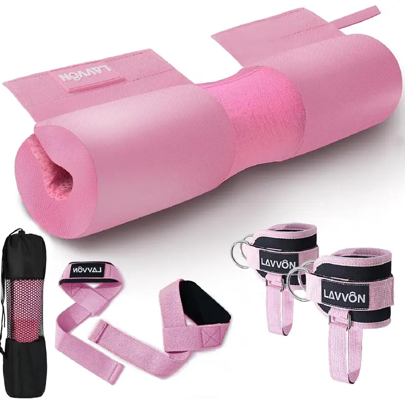 ELEVATE YOUR WORKOUT: Ready to take your weightlifting and strength to the next level? Look no further than LAVVON’s hip thrust pad set! Made to meet the highest standards of quality. ULTIMATE COMFORT: The squat bar pad for Olympic bars is made from soft, thick and protective high-density foam which increases durability and allows you to train in a much easier and comfortable way. VERSATILE ANKLE STRAPS: We use a sweat resistant, breathable neoprene ankle cuff, Thicker 8mm padding can effectively provide cushioning,, calves. Tone, trim, and tighten your leg and glute muscles for a butt, Thighs that are beach ready. STRENGTHEN GRIPS: Constructed with reinforced double cross stitching, the lifting straps boast of ultra durability. The wrist straps for weightlifting can go around the bar 3 times for optimal wrist support and drastically improved grip strength. PORTABLE: Barbell Neck Cushion Pad Set includes one Lightweight High Density Foam Neck Pad, Comfort Ankle and Deadlift Weighting Strap, Portable storage bag designed to bag take it easily to the gym or any other place and Two safety Velcro straps provides extensive protection, so it does not move around during exercises. WARRANTY: Making sure that you get a gym accessories for women of the highest quality is very important to us. Provides a full warranty for all of its products.