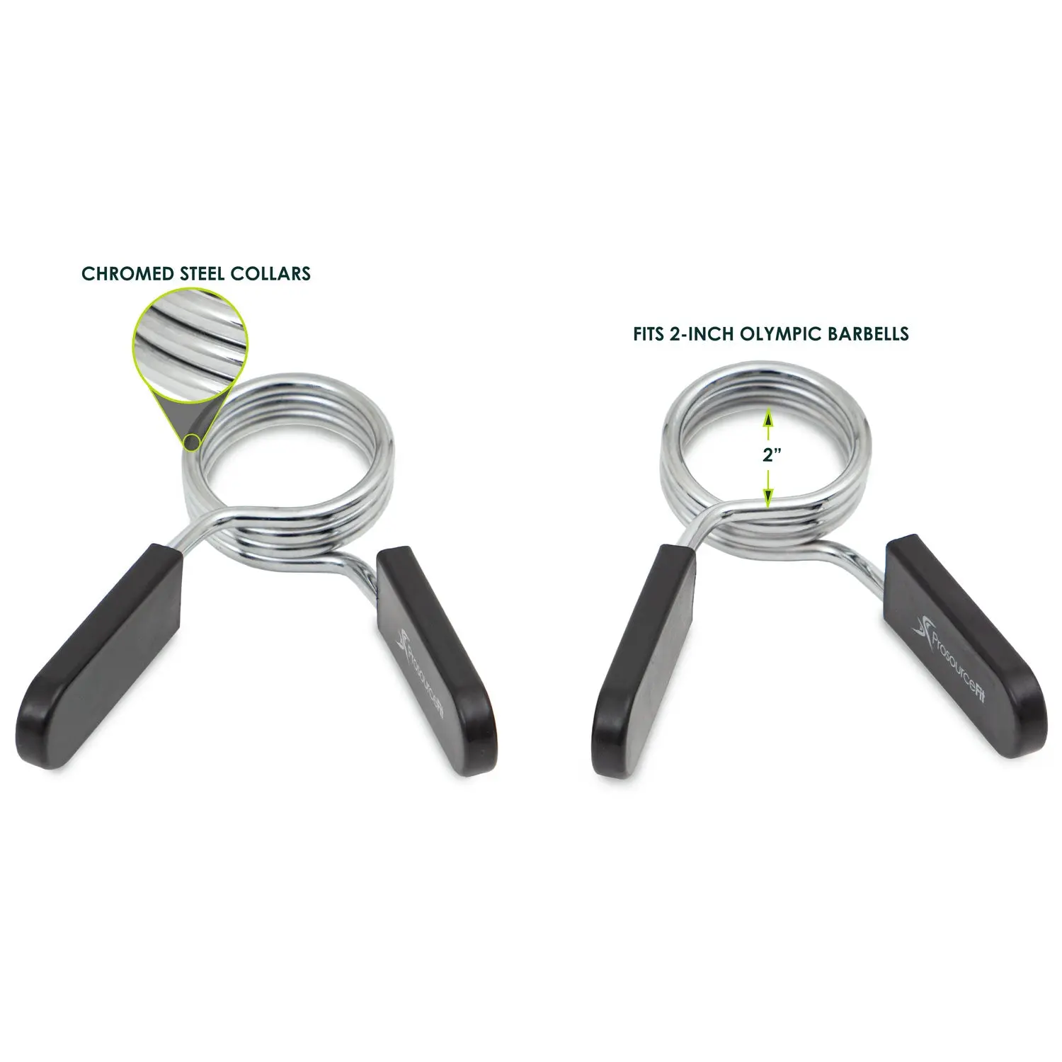 The ProsourceFit Barbell Spring Clip Collars are a simple solution to sliding weights. The high-quality steel collar fits snugly around standard 2-inch barbell sleeves, ensuring a tough grip to keep your plates securely on the bar, especially as you add more weight. Don’t worry about plates moving or falling when you’re pressing the bar overhead or trying to maintain balance during a heavy squat. The removable plastic handles are easy to grip, even during sweaty workouts, and make it simple to slide the clips on to safely perform exercises like cleans, snatches, and squats. A must-have for serious powerlifters and CrossFitters, these reliable weightlifting collars are sold in pairs.
