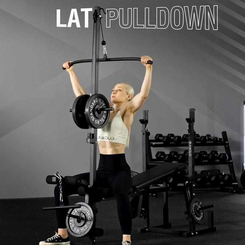 ·Excellent Adjustability - With a 4-position backrest, you can effortlessly switch between incline and flat positions. It also comes with a 5-position barbell rack, 3-position preacher curl pad, and 2+3-position developer. Mikolo weight bench enables you to perform a diverse range of exercises to target your legs, back, chest, abs, shoulders, and arms