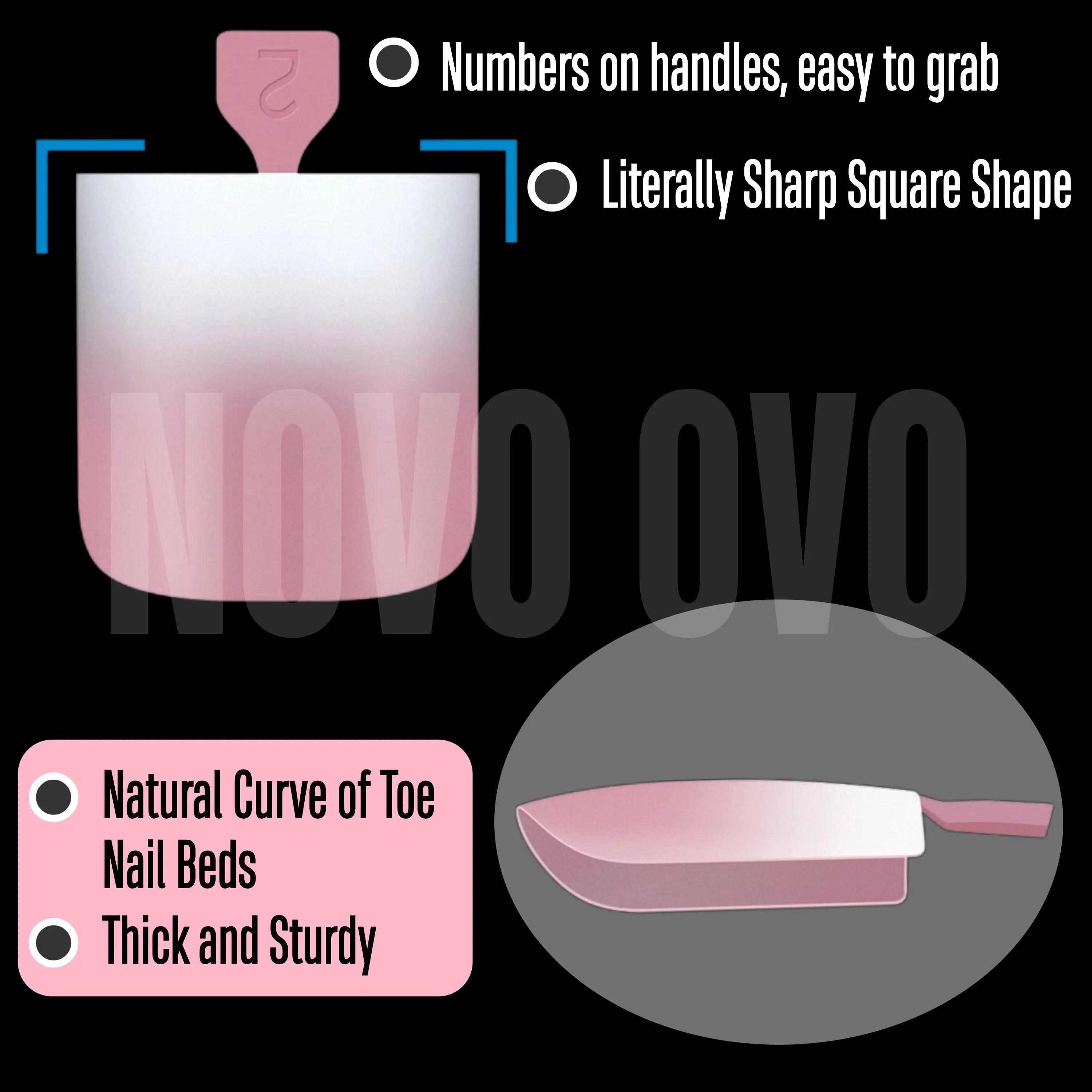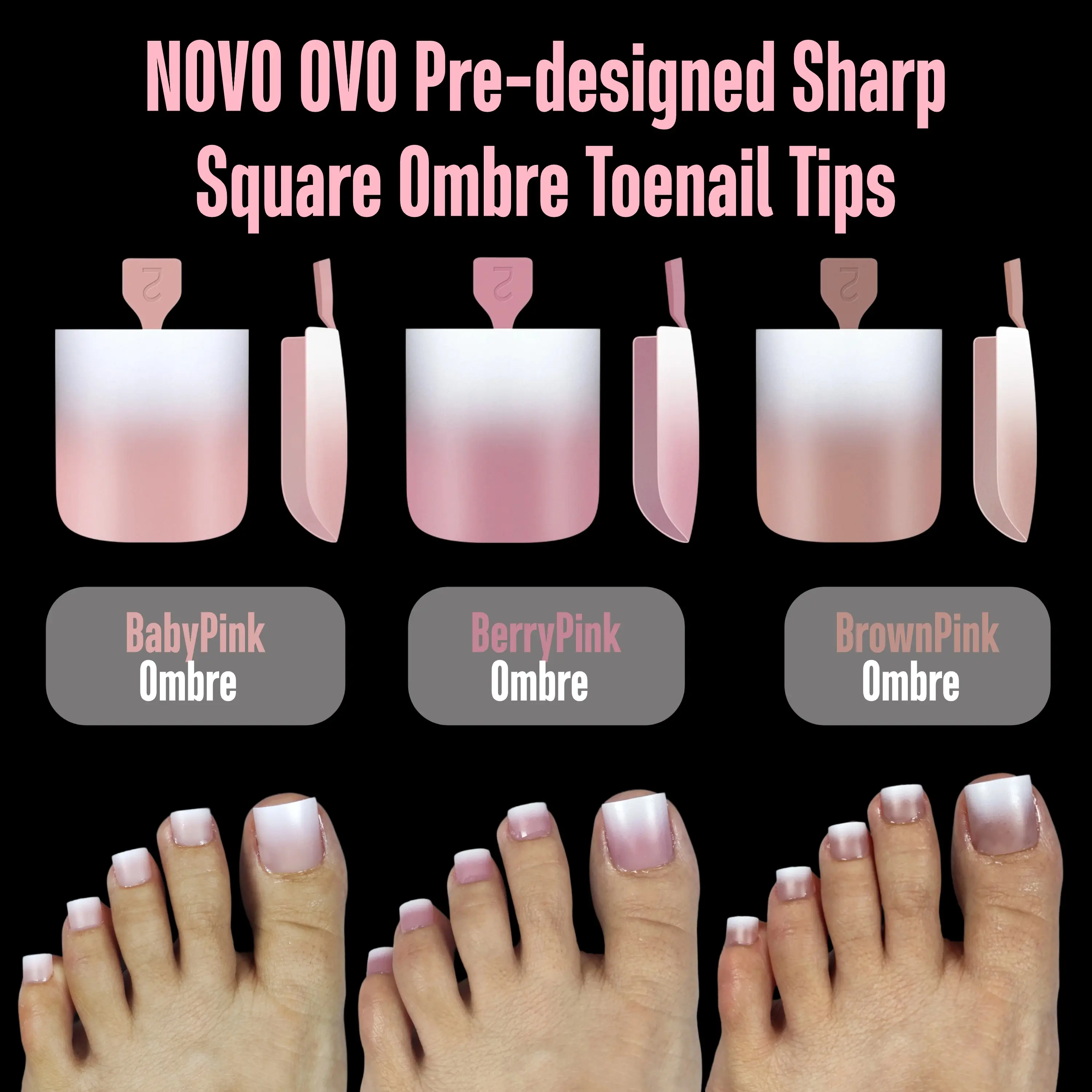 ·GET THE PERFECT OMBRE PEDICURE WITH JUST A FEW SIMPLE STEPS! NOVO OVO pre-designed ombre nails are here to make your pedicure easier! We've already applied a tip primer and base coat on the soft gel nail tips. Simply stick them on your nails with UV gel or glue, then add a layer of builder gel and top coat. In just 15 minutes, you'll have stunning ombre on your toenails!