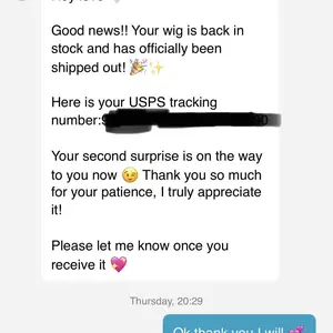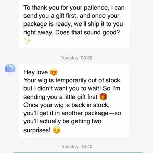I am extremely disappointed in this company!I was told that I would receive a special gift because my wig was out of stock so I’m thinking it’ll be another wig,I received the free gifts that already came with the wig, I was told my wig was shipped and when I track it it’s saying a label was created.