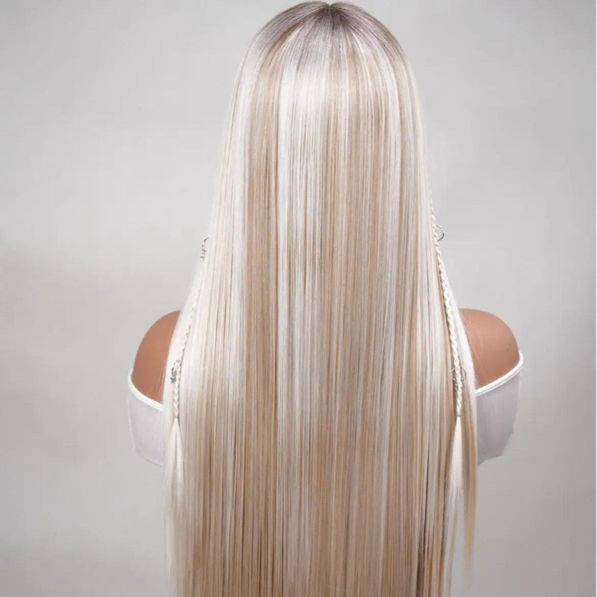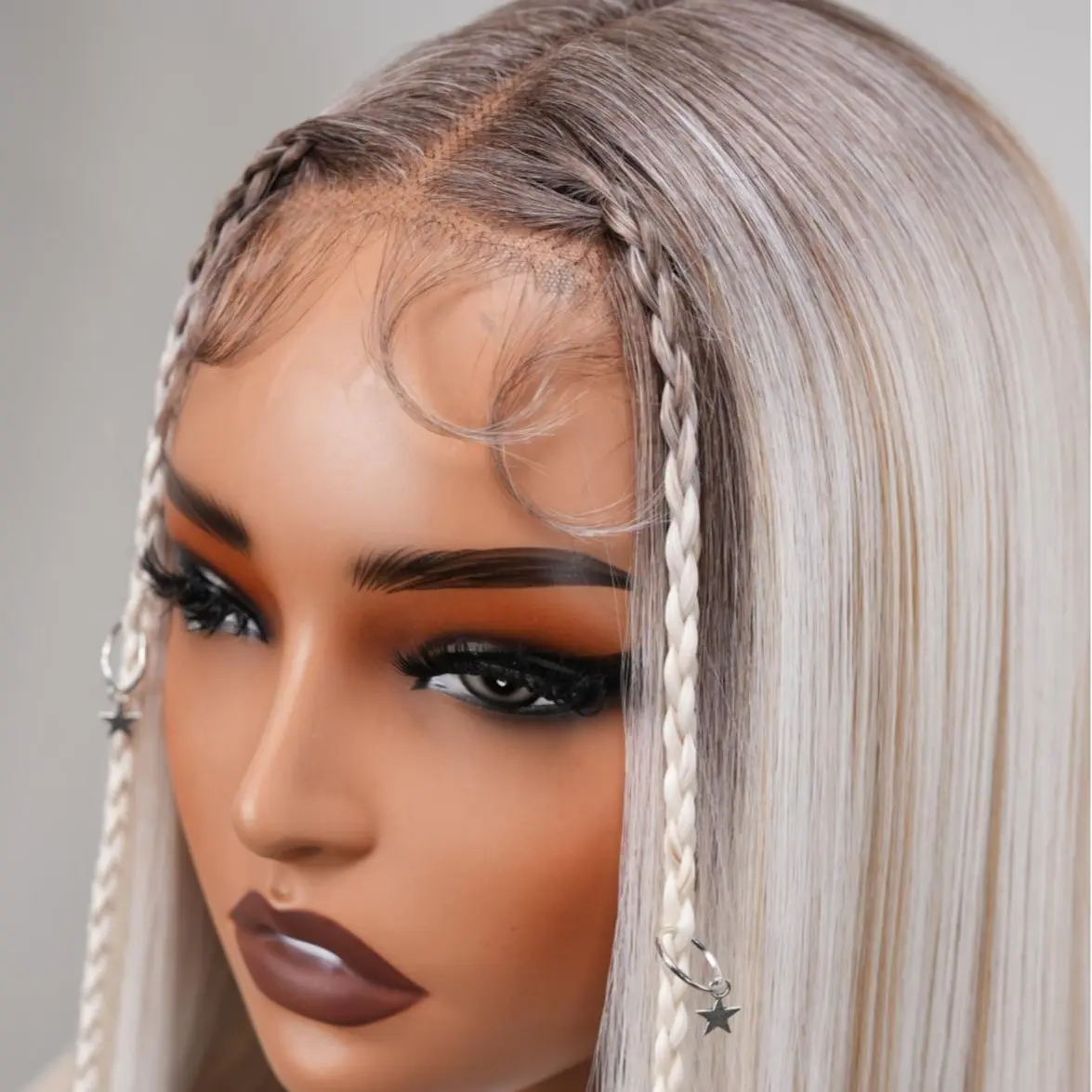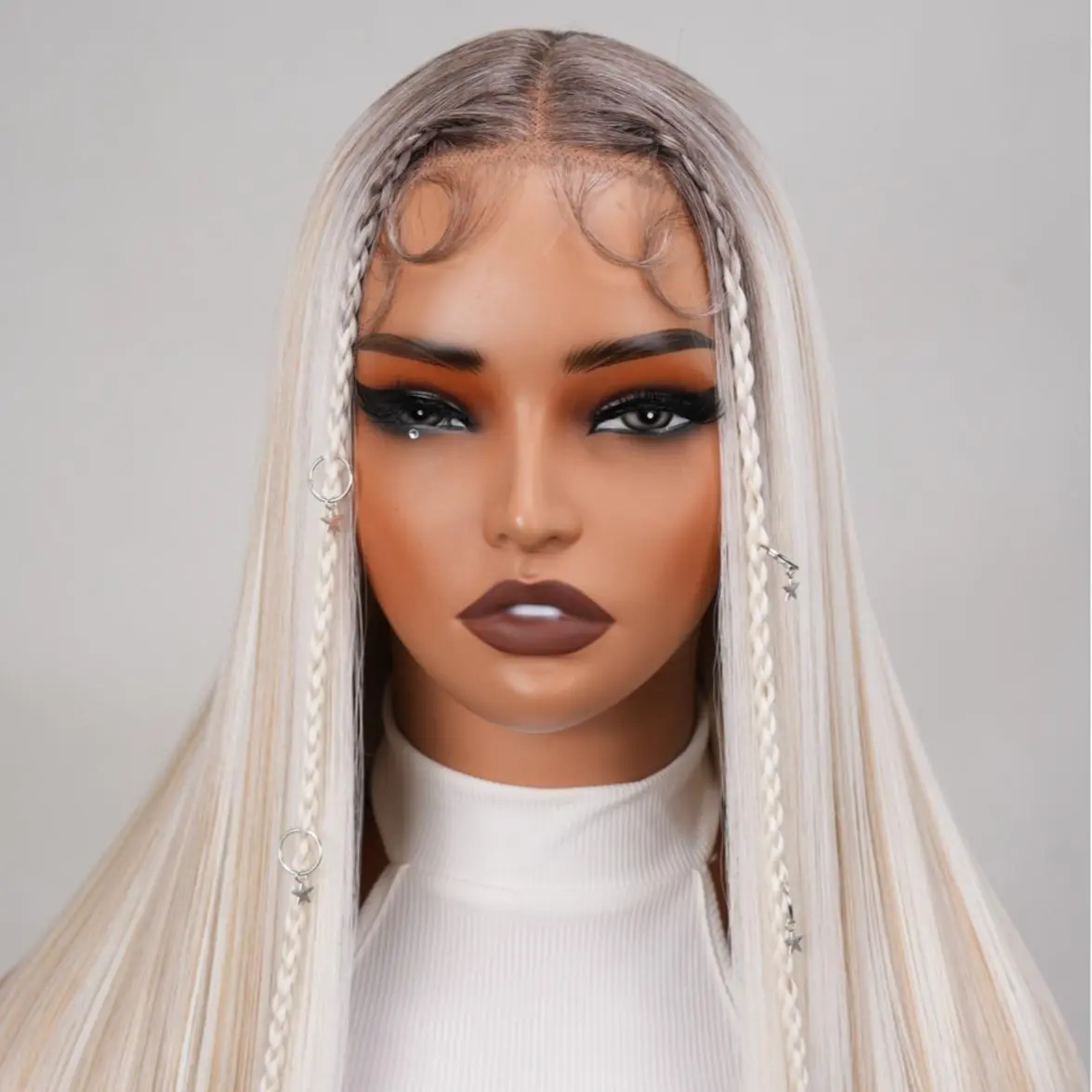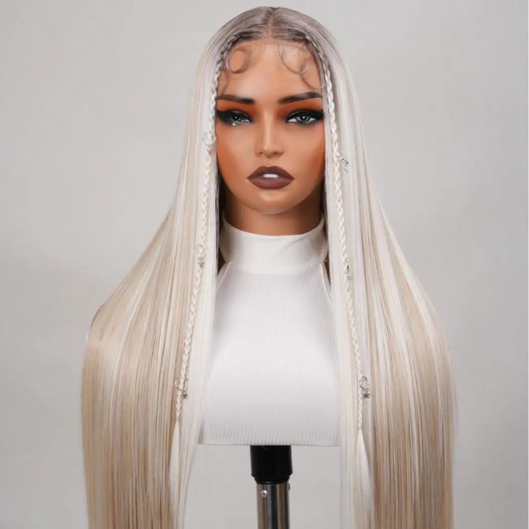 5. Noble 30 Inch Ash Blonde Ombre Straight Wig with Braids & Star Charms