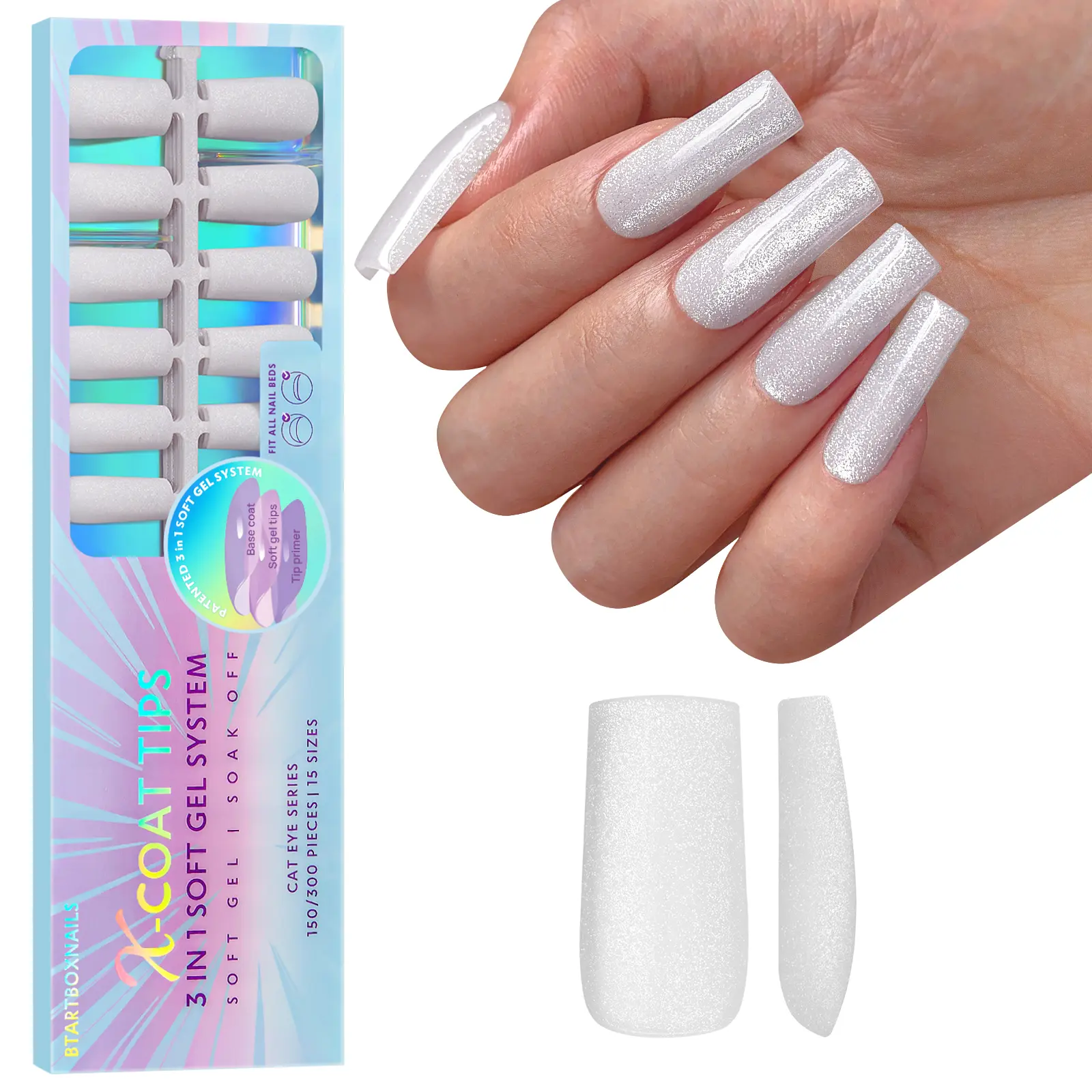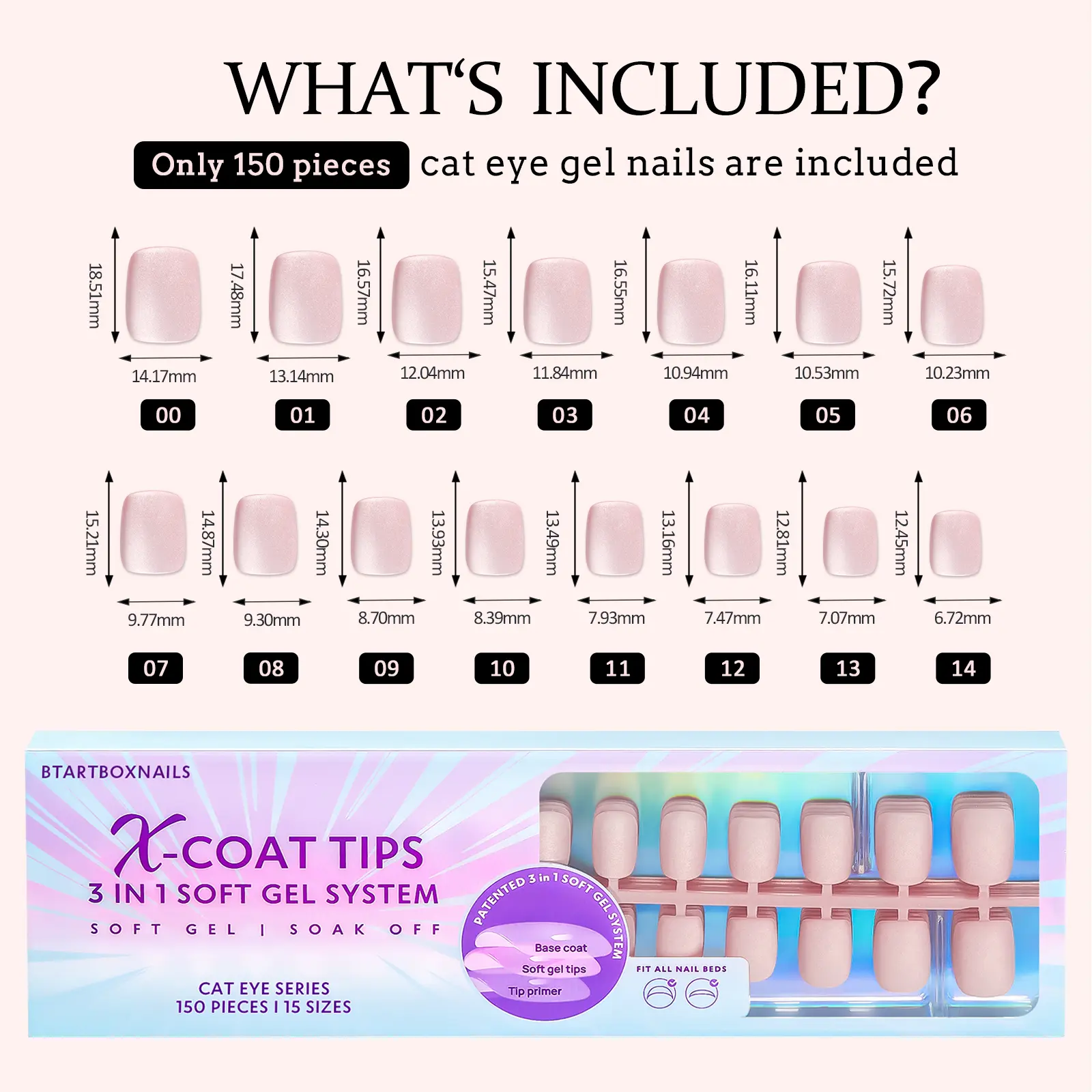 btartboxnails XCOATTIPS Cat Eye Nails - Short Square or Almond orCoffin Soft Gel Nail Tips, Product only 150pcs French Tip Press On Nails