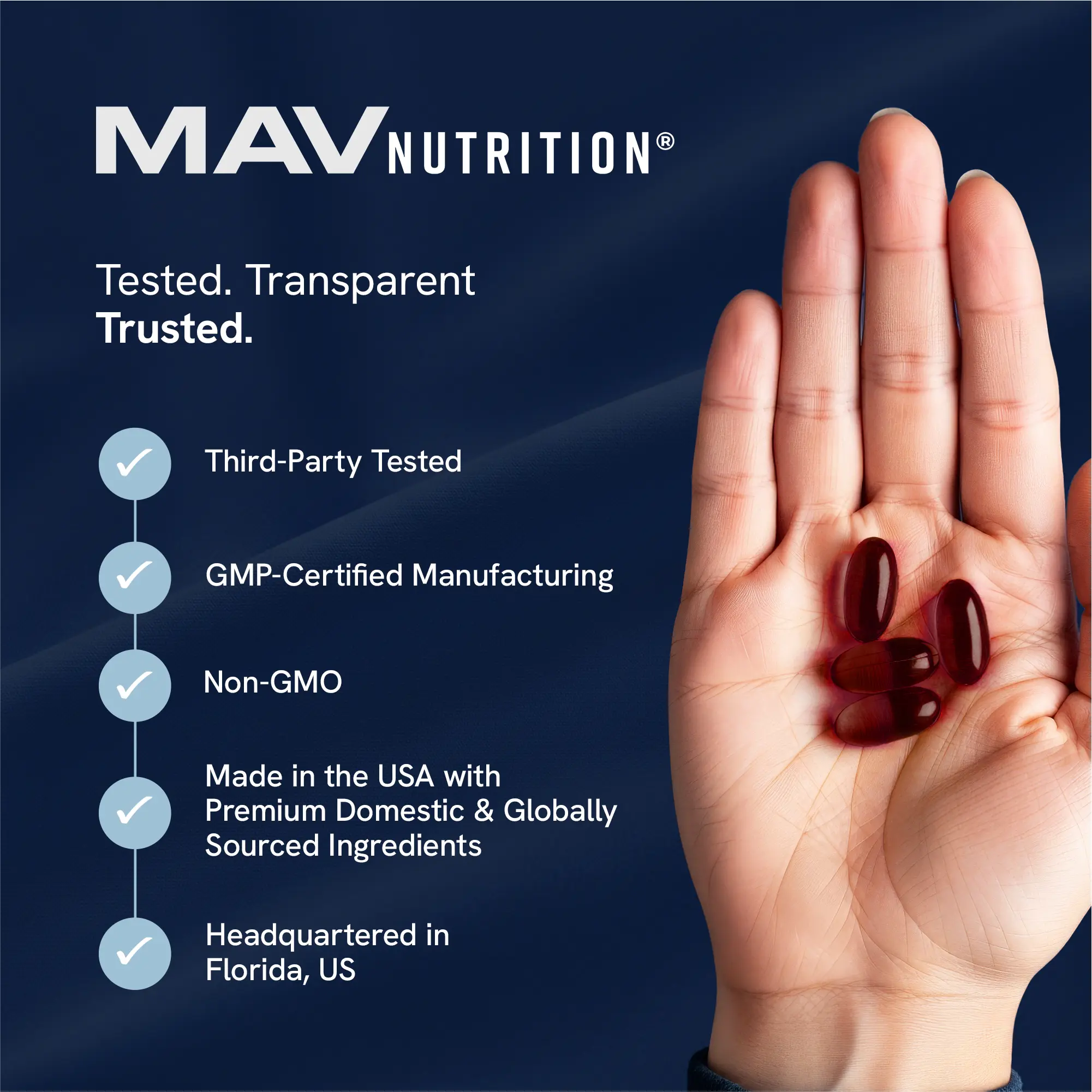 MAV Nutrition’s Omega 369 is made with premium, sustainably sourced Omega-3, Omega 6, 7 & 9. All supplements are Non-GMO and manufactured to the highest quality standards. 🌍