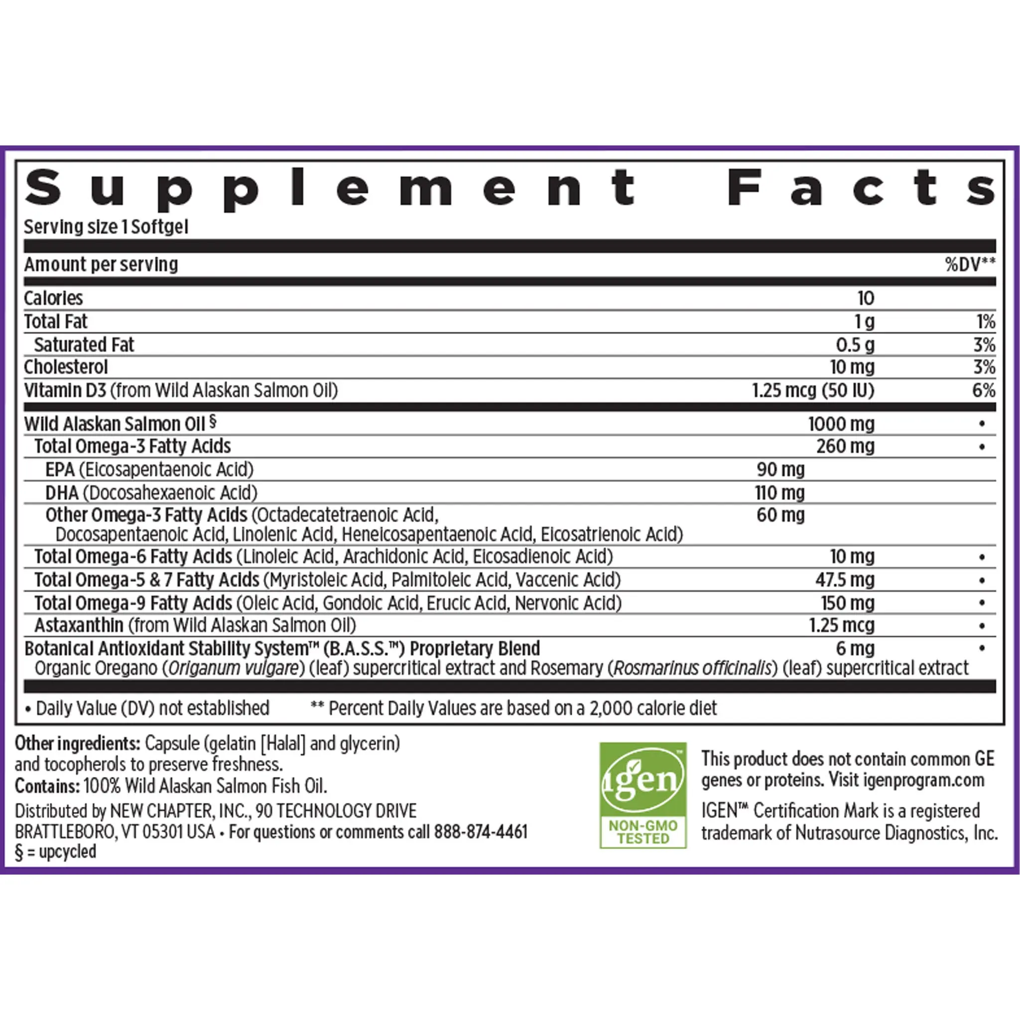 Contains: 100% Wild Alaskan Salmon Fish Oil.