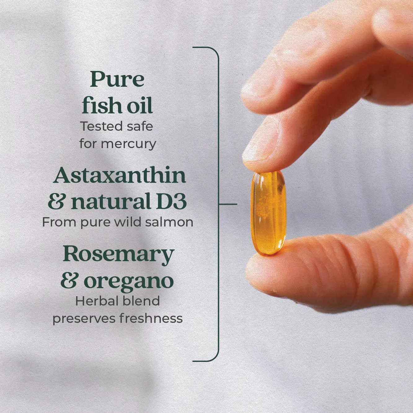 Other ingredients: Capsule (gelatin [Halal] and glycerin) and tocopherols to preserve freshness.
