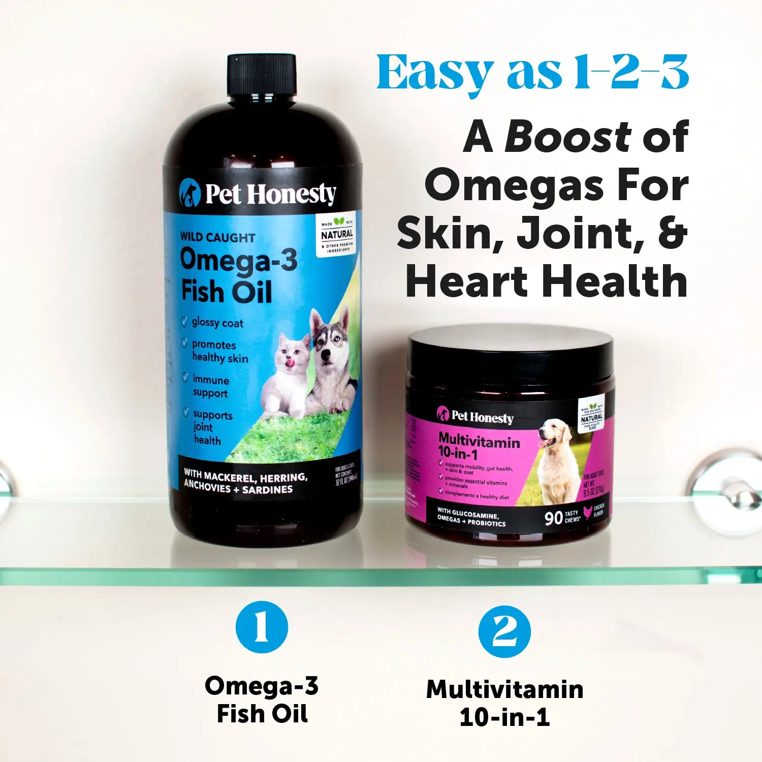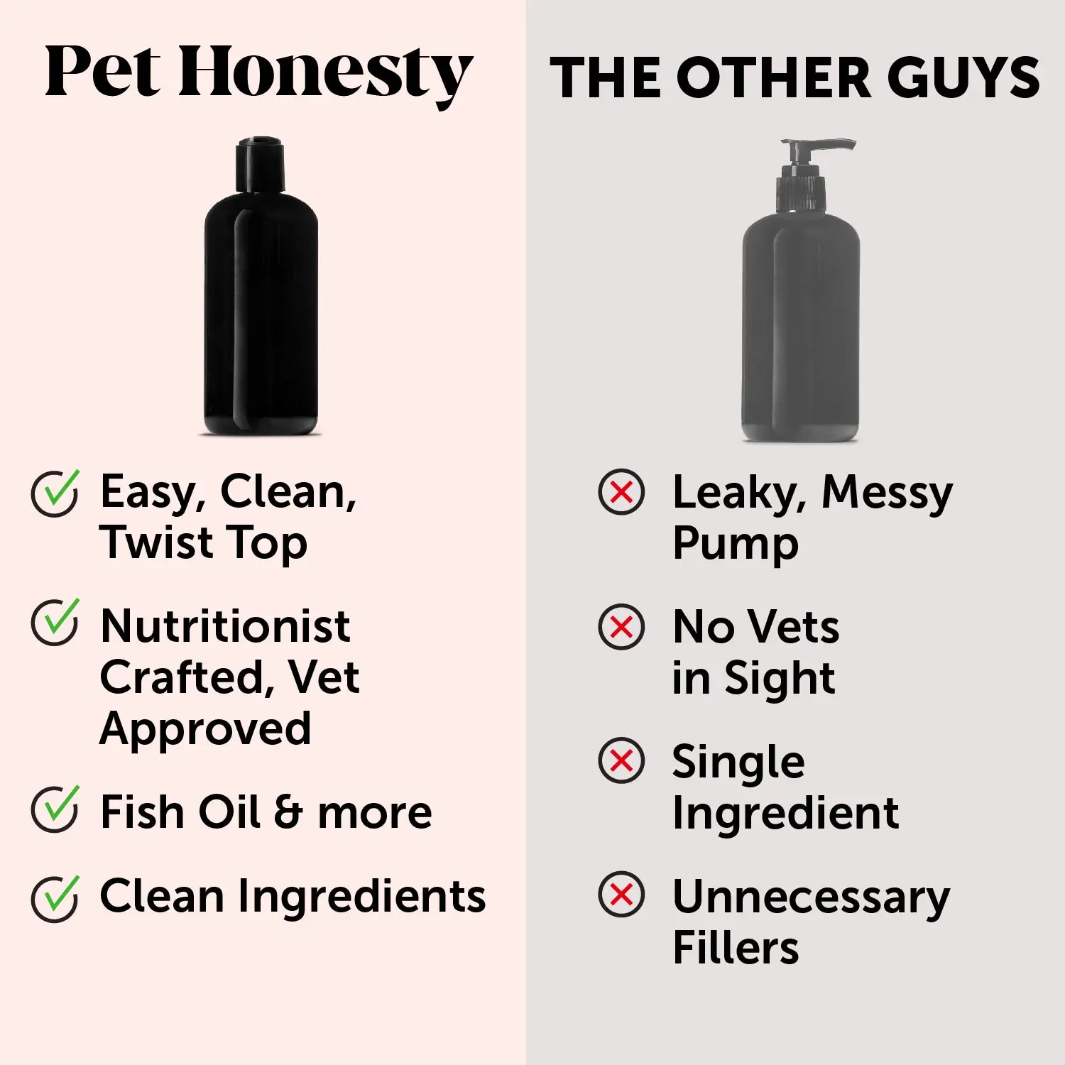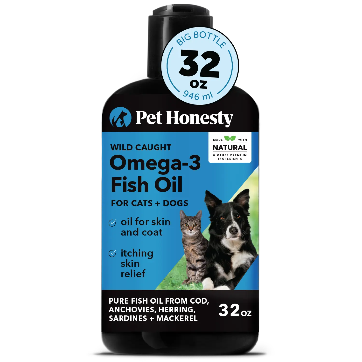 Pet Honesty’s Omega-3 Fish Oil for dogs & cats is made with sardines, mackerel, anchovies and herrings, caught in clean, cold waters off the coast of Iceland. These fish are high in Omega-3s but low in mercury and toxins - creating a supplement that best helps support your dog or cat's joint, heart, skin, coat, brain and overall health.