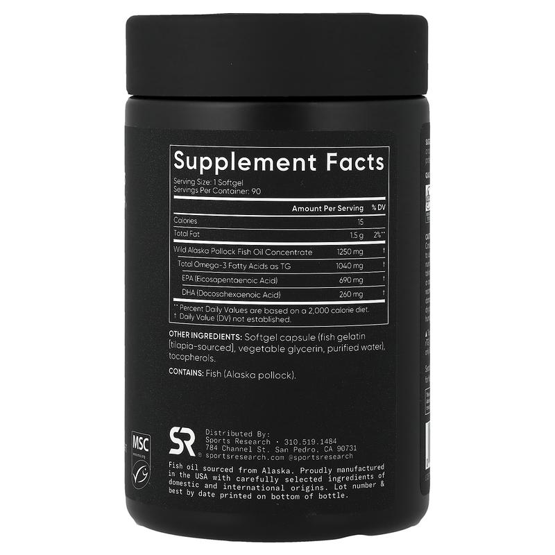 5. Sports Research Alaskan Omega-3 Fish Oil, 90 Softgels