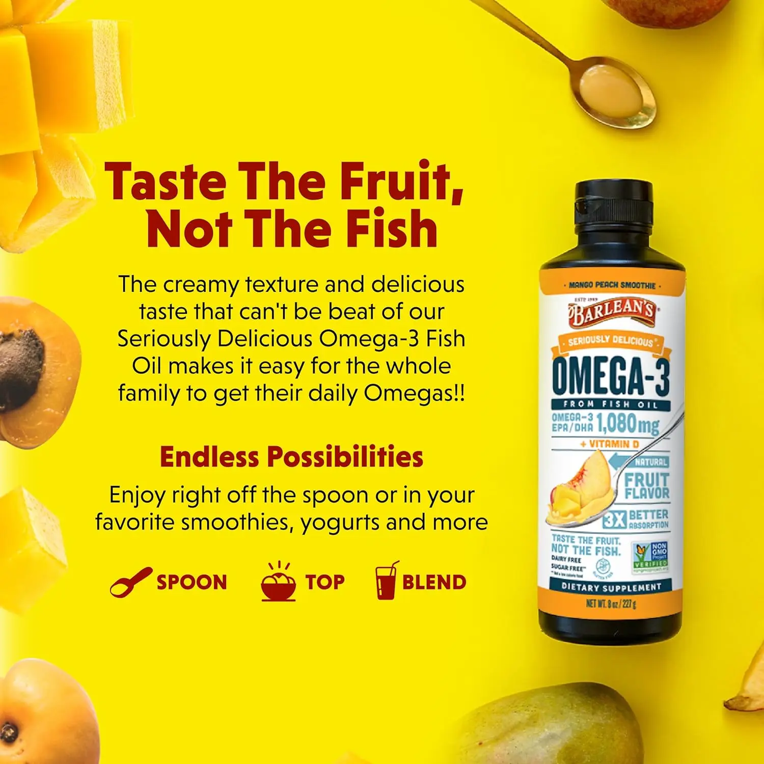 ·We've revolutionized fish oil supplementation: Our unique process transforms high-quality, purified fish oil into creamy, tropical mango peach treats