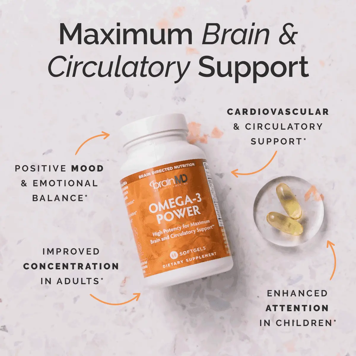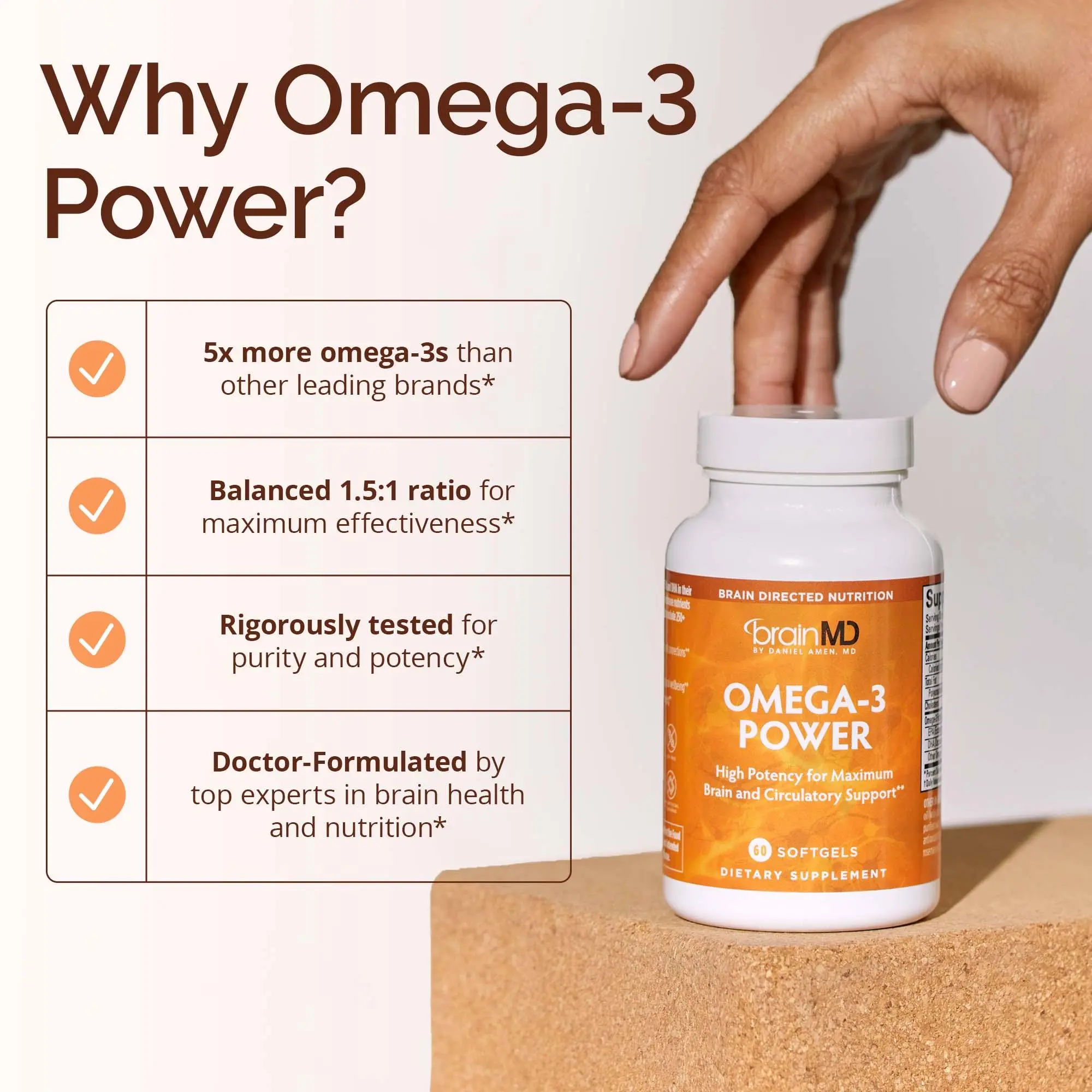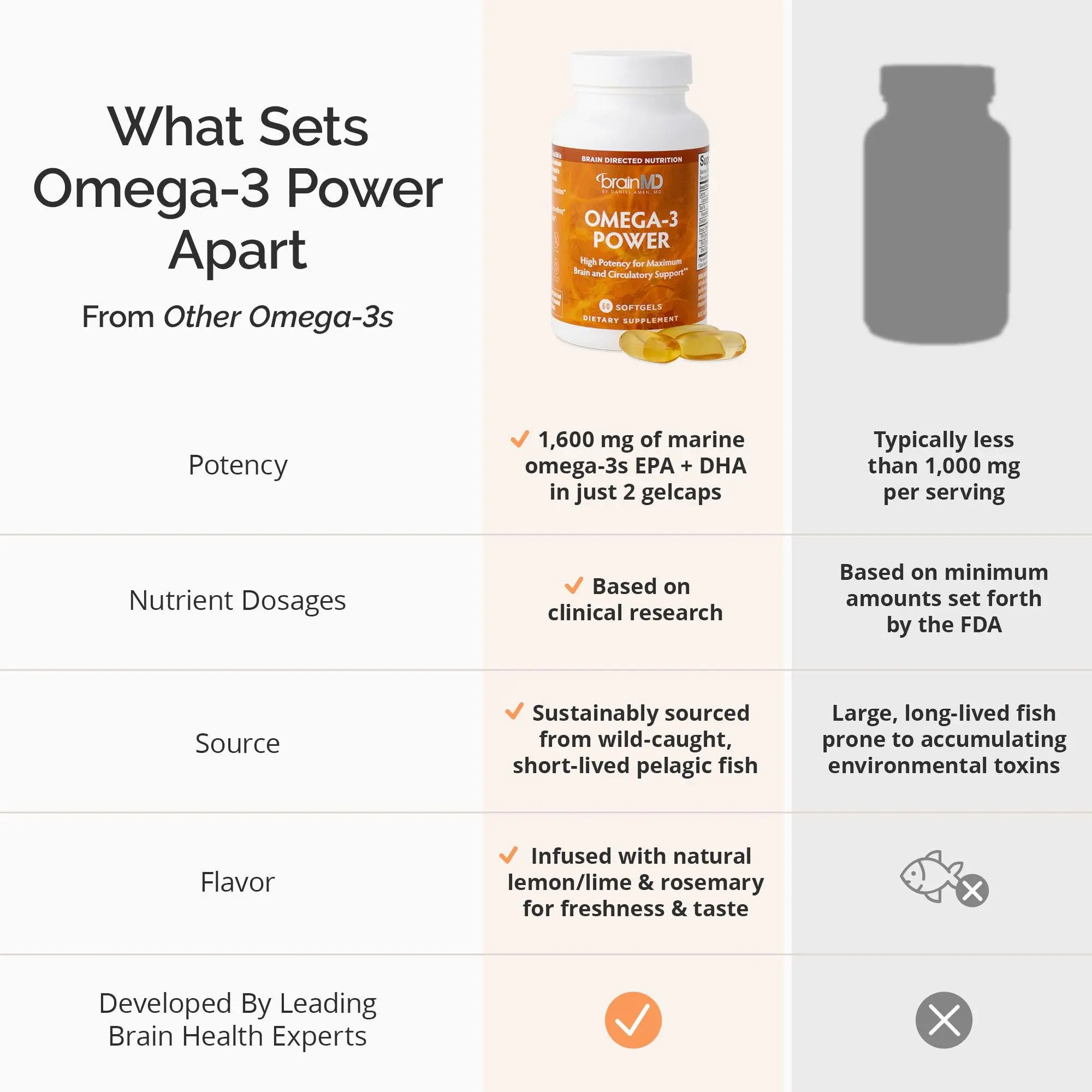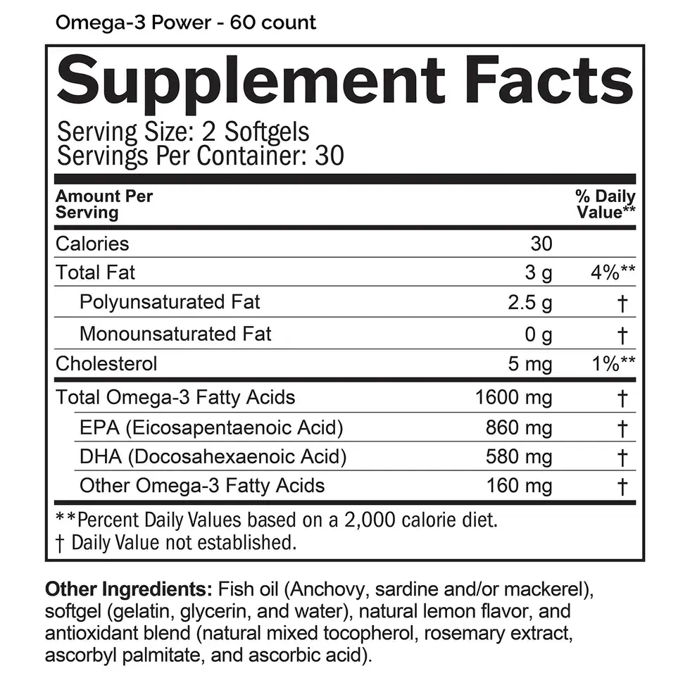 Boost your brain, heart, and body with Omega-3 Power—a highly concentrated fish oil supplement delivering 1,600 mg of DHA, EPA, and other essential omega-3s per serving to support mood, memory, focus, and heart health.*